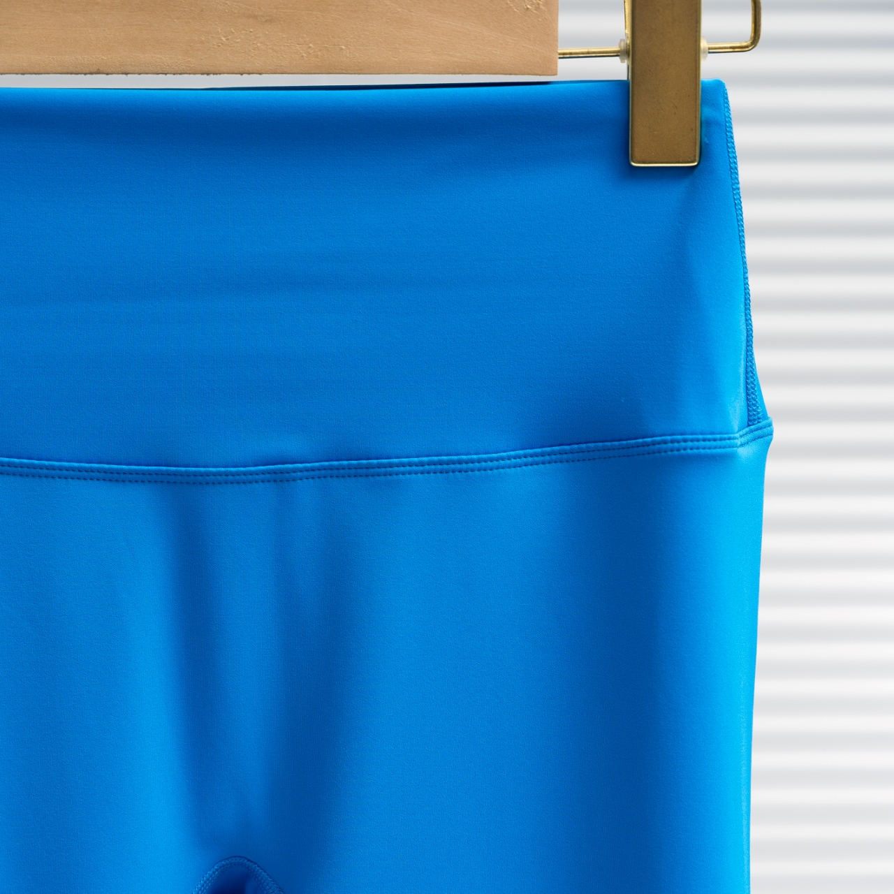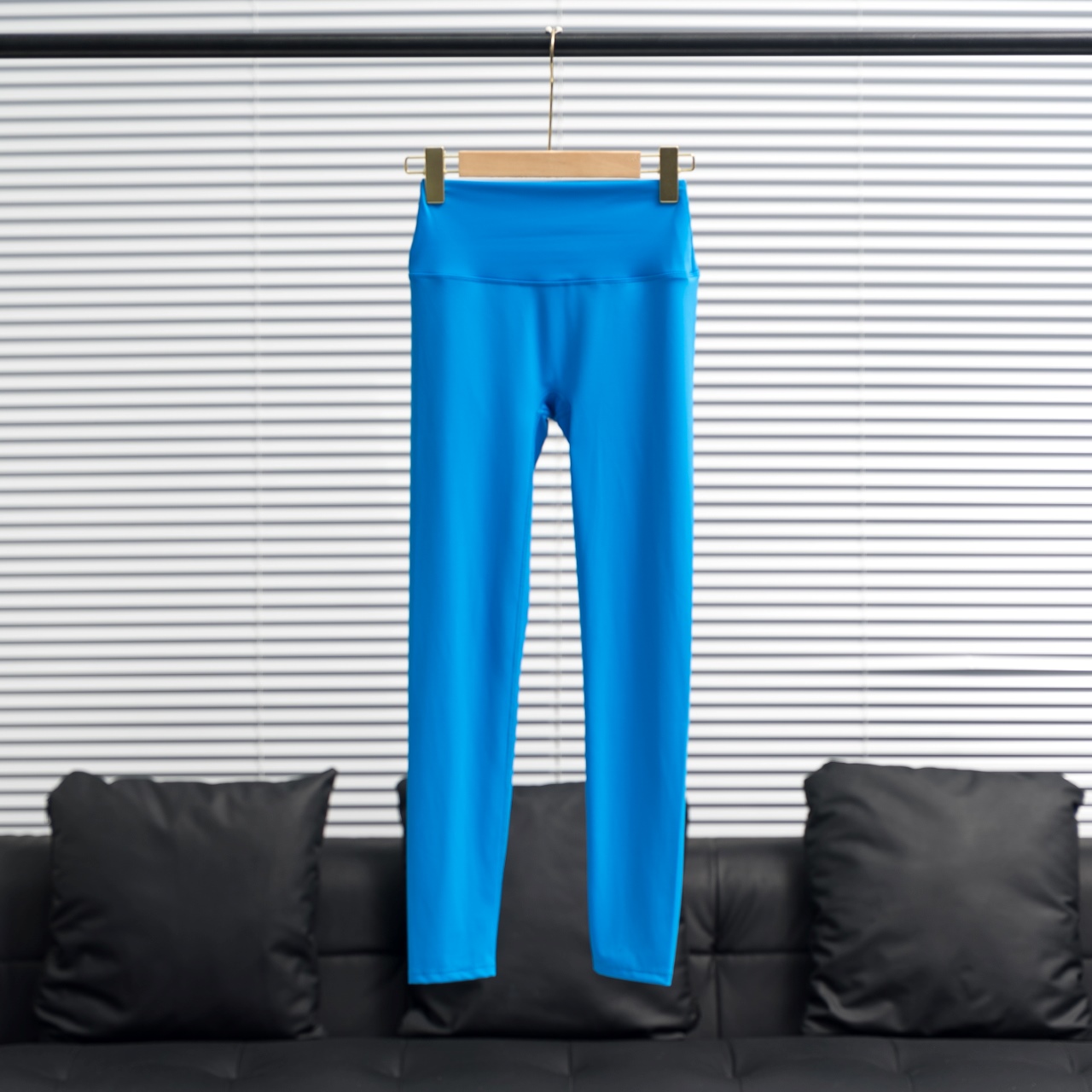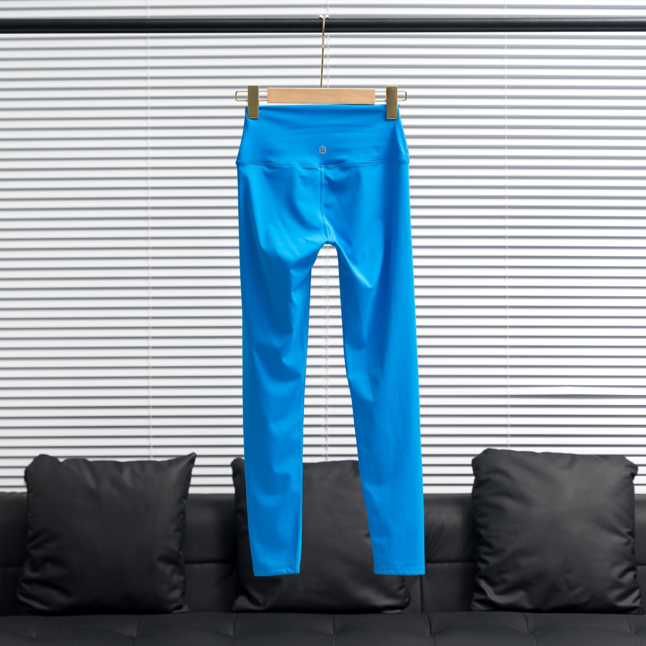 Lululemon crop pants with silver/gold waist & leg logos. Color: Lightning Blue. Sizes: 2-12.