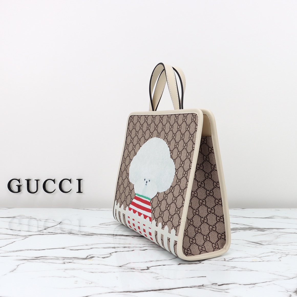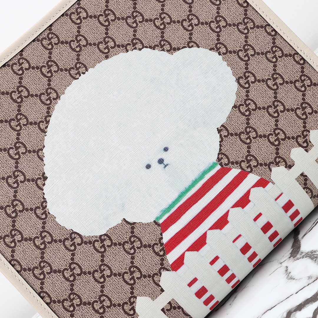 Counter quality, original factory leather, style number 605614 small dog print. Dimensions: width 28.5 x height 25 x side width 11. Ready stock available for shipment!