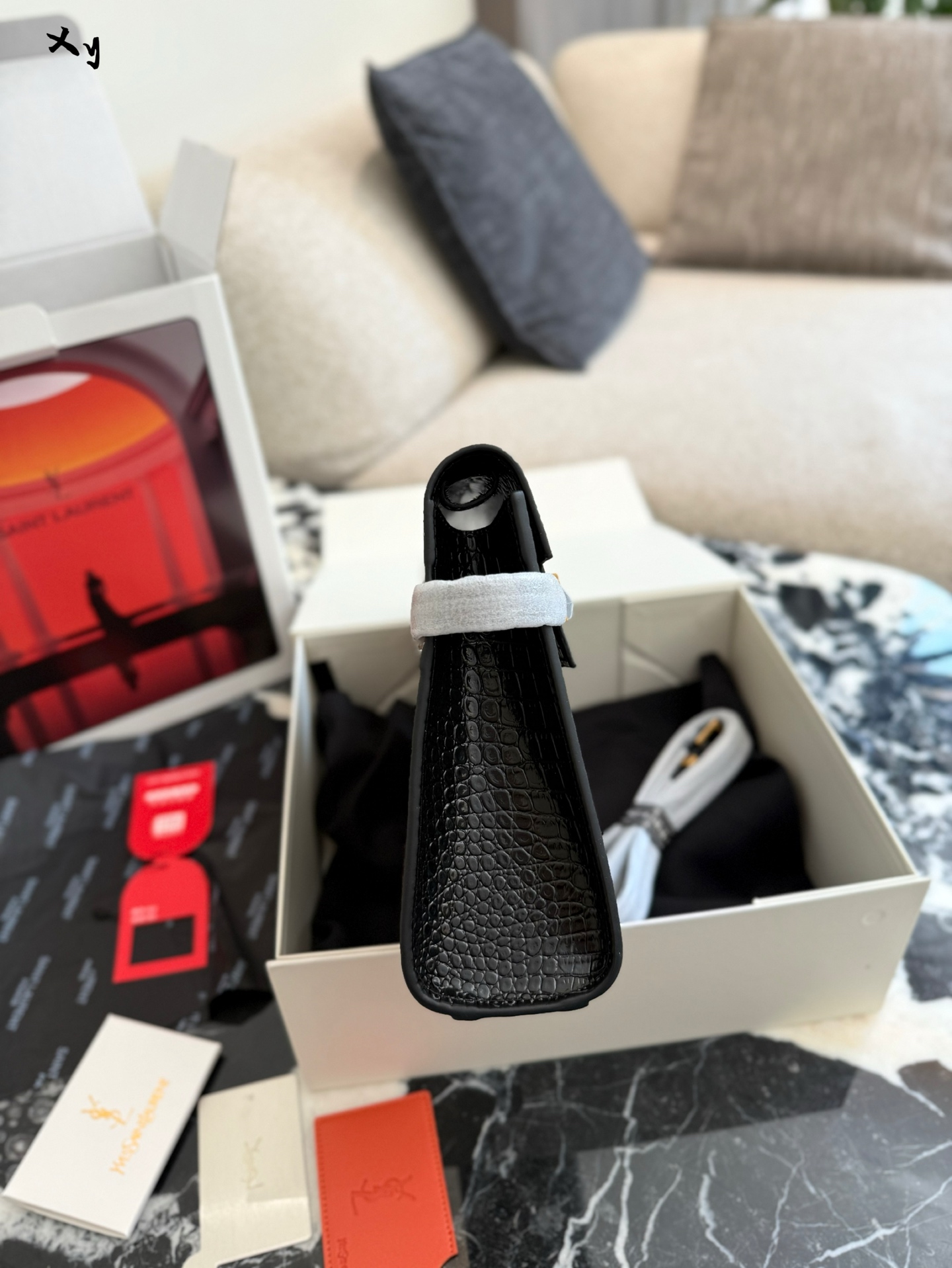 The design is sturdy and sleek, low-key yet naturally commanding. This bag features a classic, structured shape with a magnetic metal clasp, simple and elegant. The bag's capacity is also very practical. The adjustable and detachable shoulder strap meets the needs of various users, and there are different material options. BOX leather has a better shine and texture but requires careful use. It has a dark, cool, and sophisticated look, suitable for both daily wear and work.