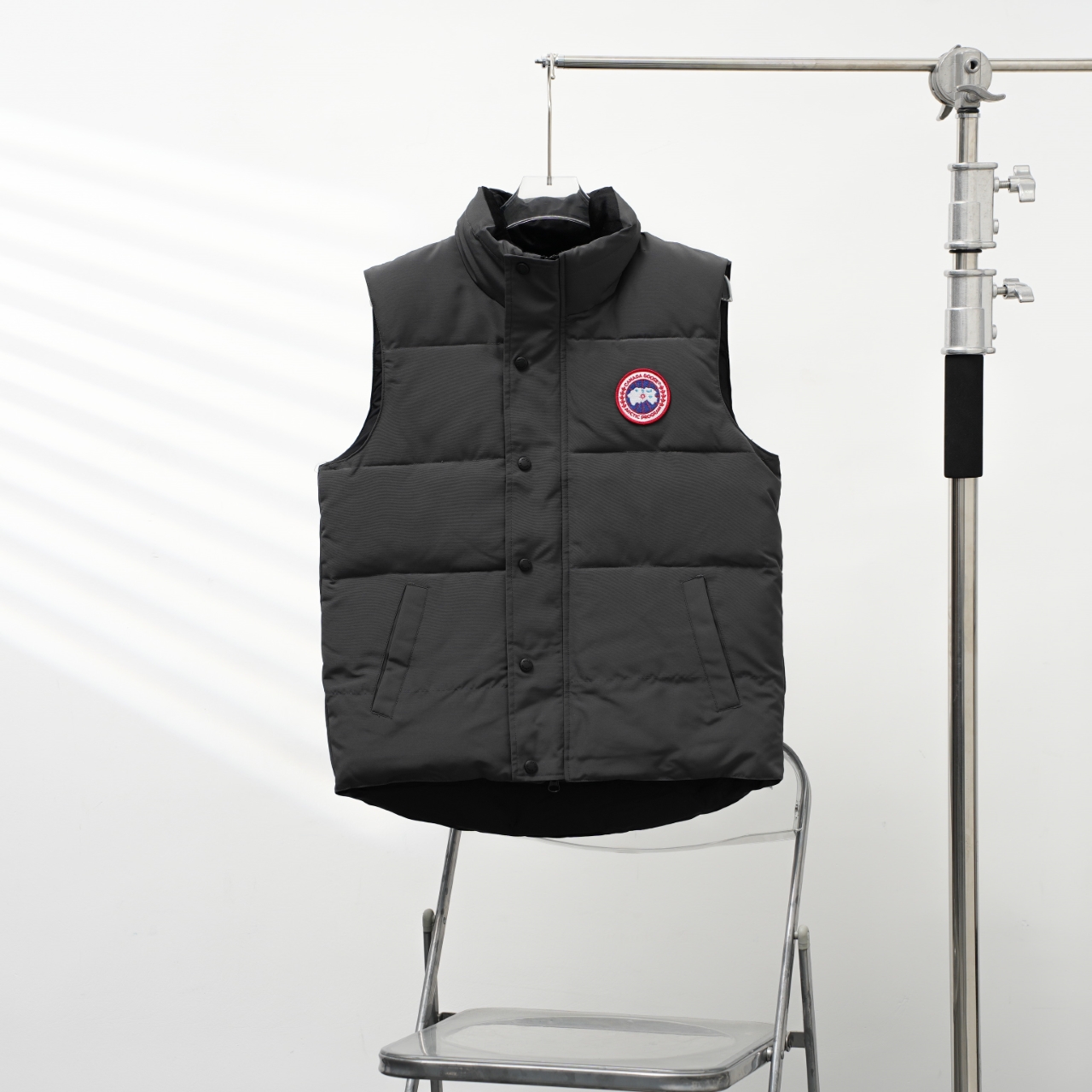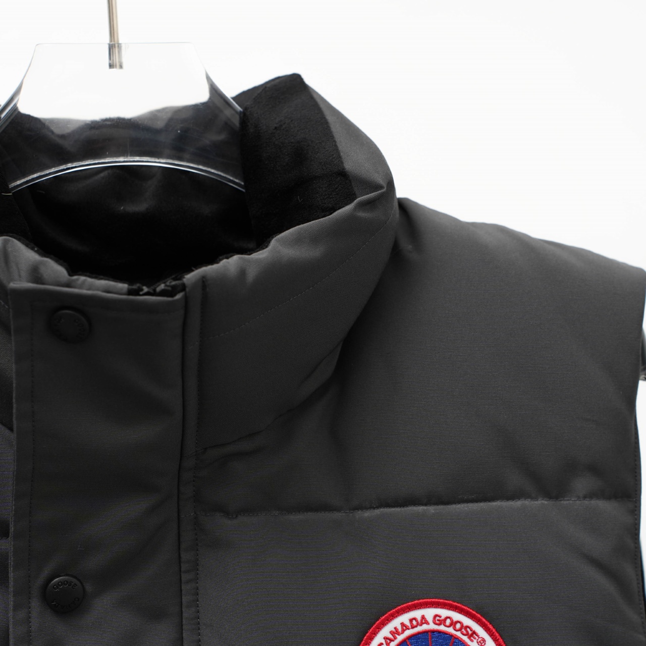 Canada Goose Vest with Slant Pockets and Stand Collar. Colors: Graphite Red Label. Sizes: XS-XXL.