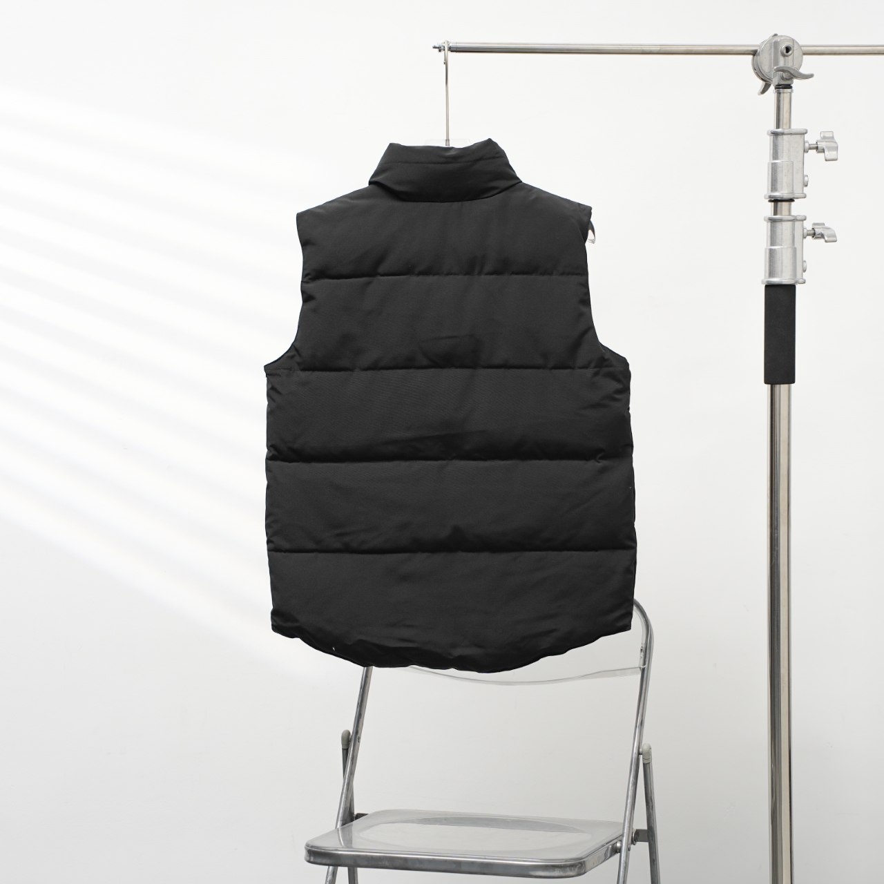 Canada Goose Vest with Slant Pockets and Stand Collar. Colors: Black with Black Logo. Sizes: XS to XXL.