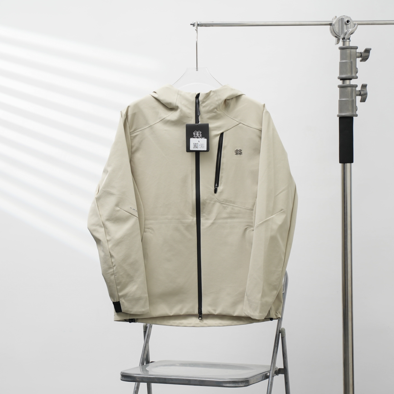 LOLON SPORT KOLON NT05 Single Zipper Hooded Windbreaker. Color: Ivory White. Sizes: M to XXL.