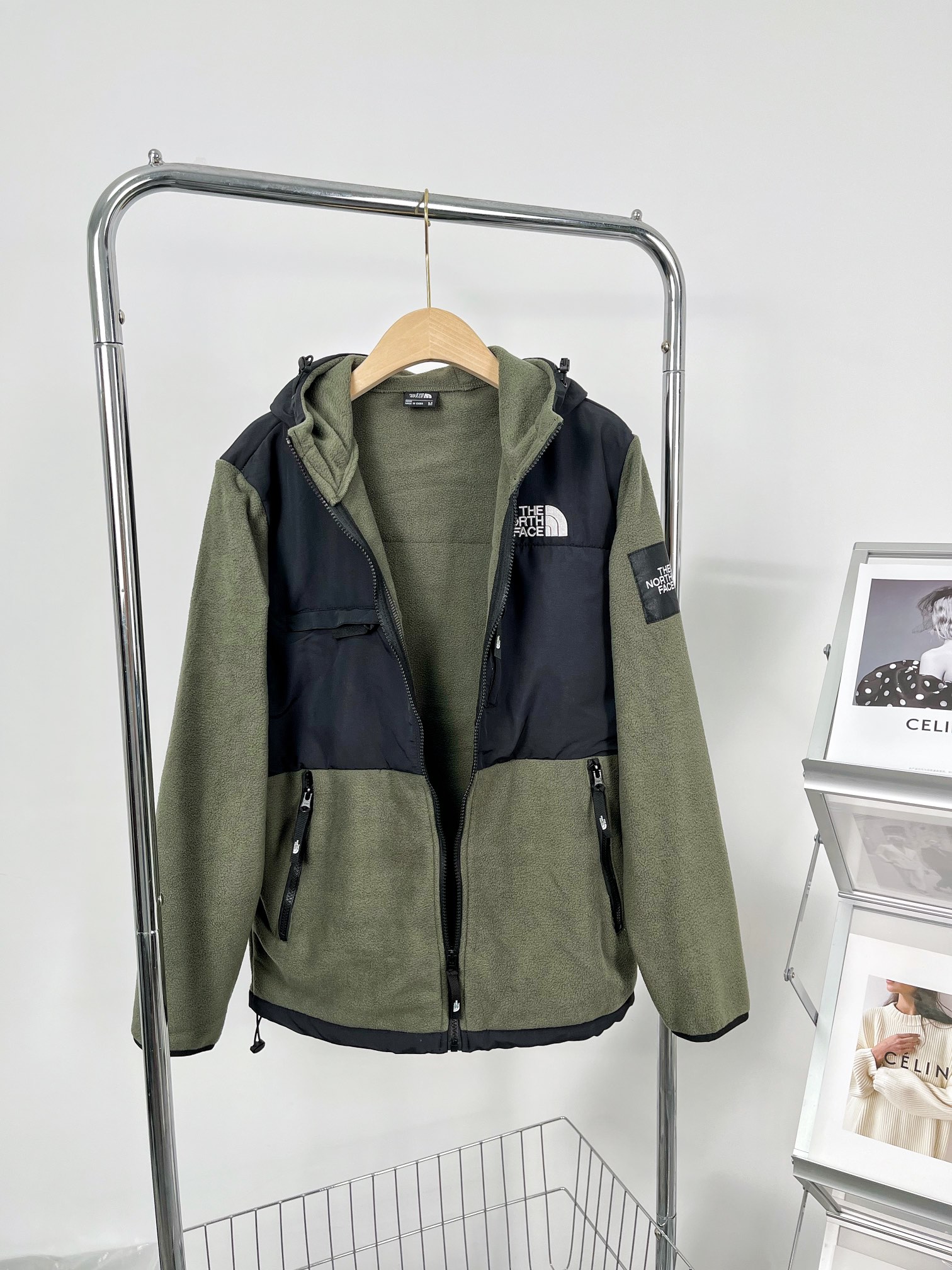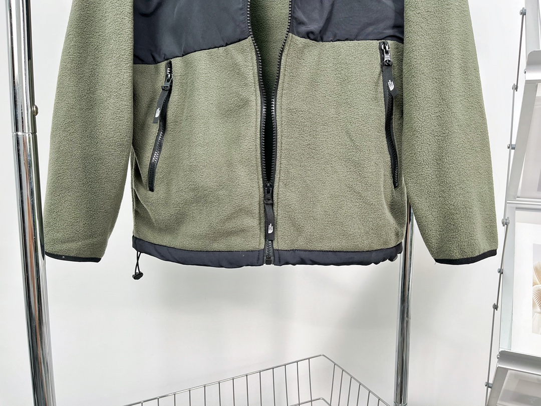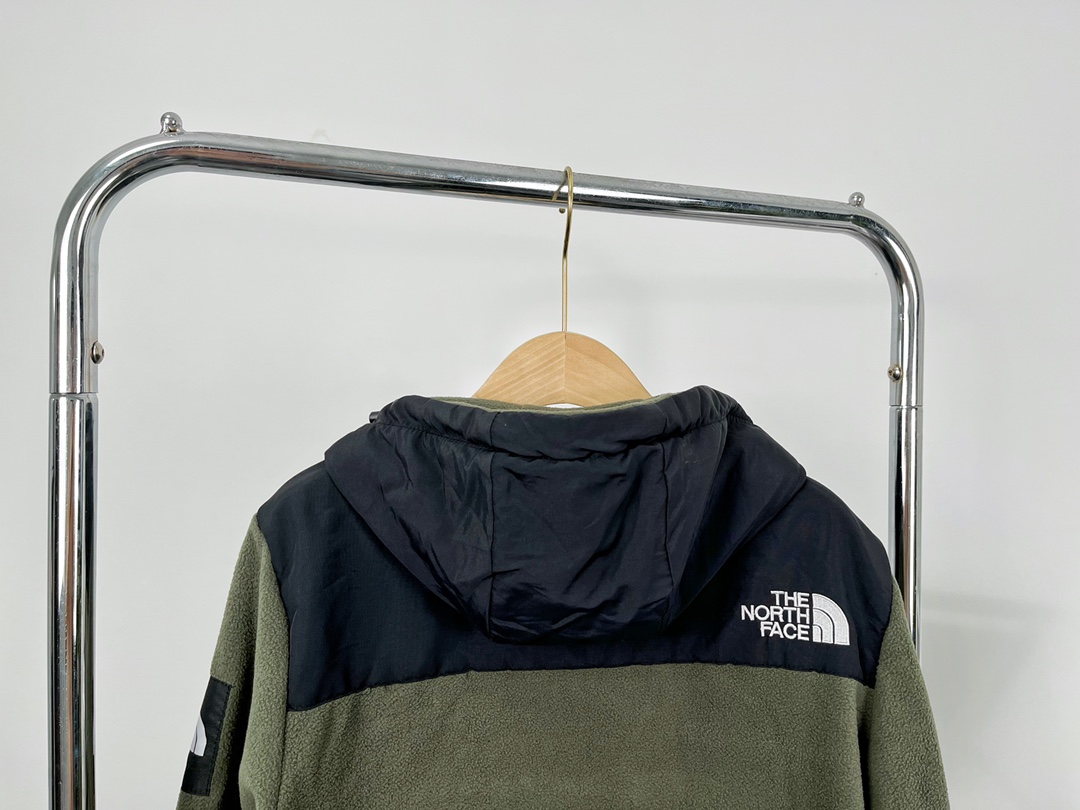 The North Face Korean-style patchwork zipper fleece hooded jacket. Made with 430g imported fleece, lightweight and soft. Features embroidered logo, custom details. Sizes S-XXL.