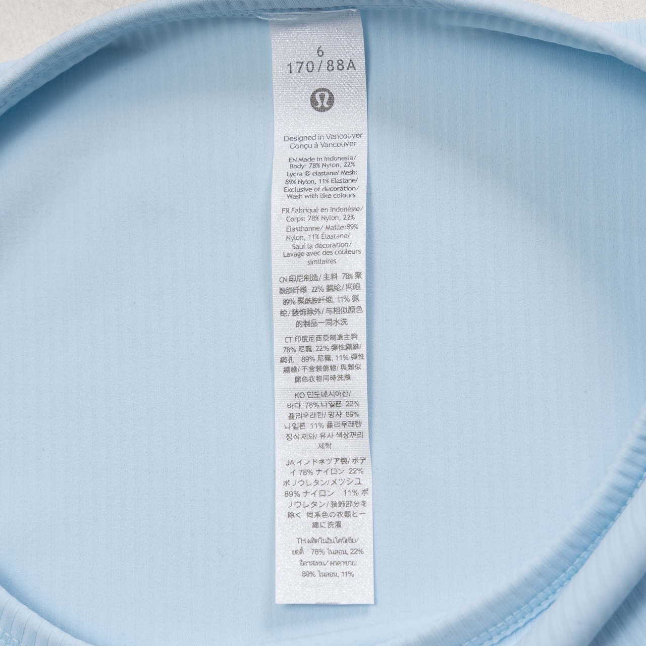 Lululemon All Takes T-shirt in Powder Blue, sizes 4-12.