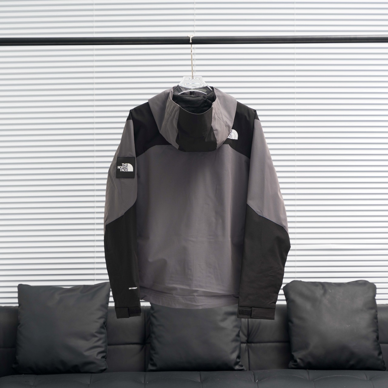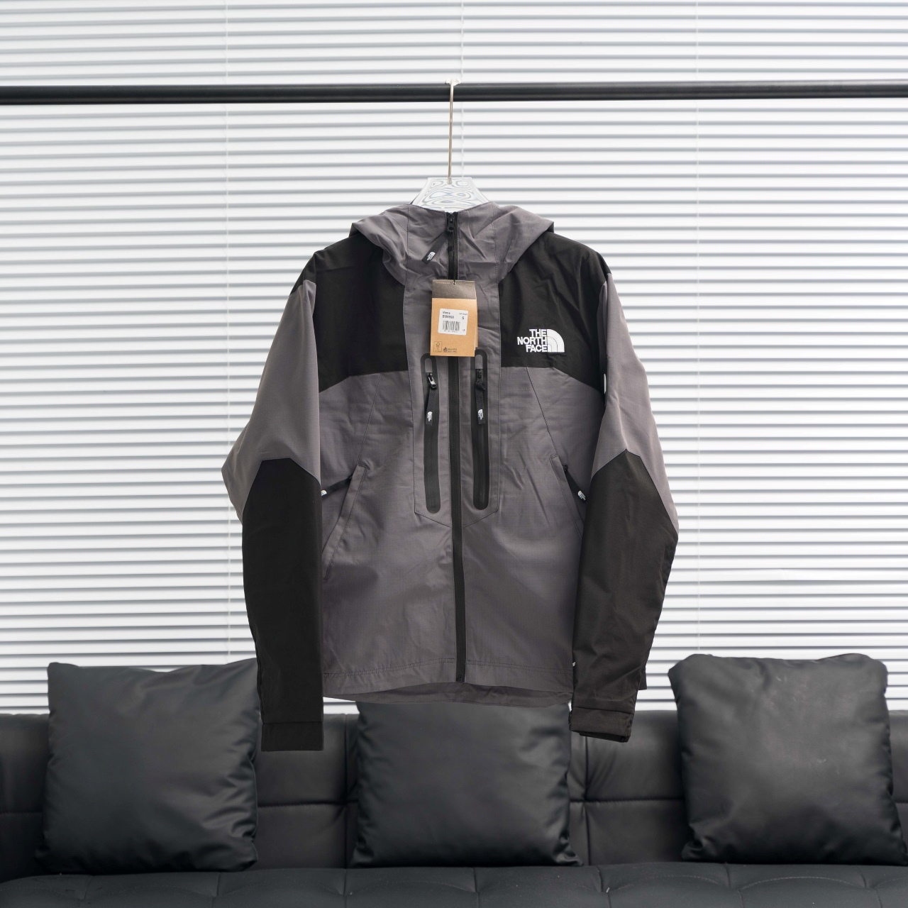TNF North Face Korean-style double zipper hooded windbreaker. Color: Gray. Sizes: S-XXL.