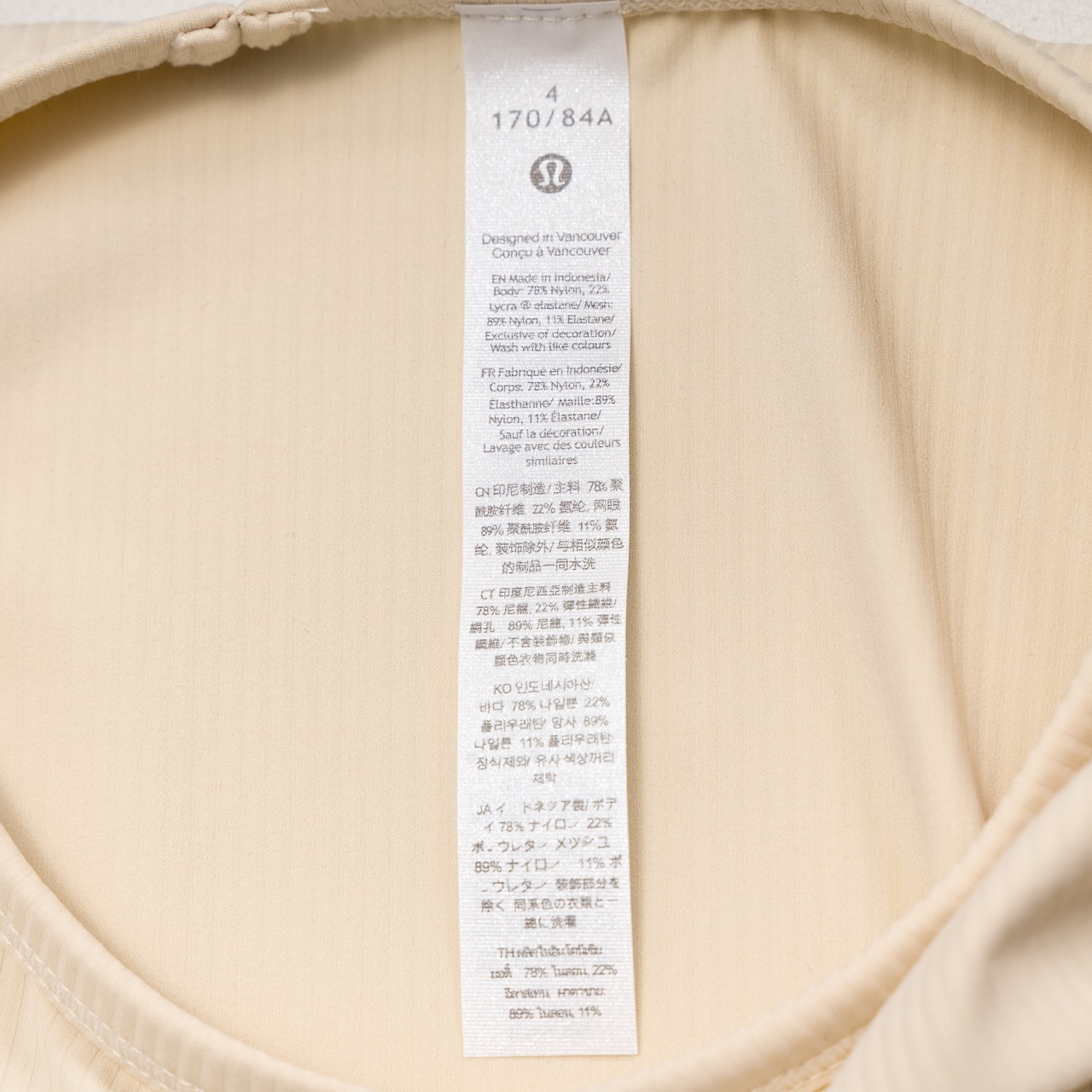 Lululemon All Takes Ribbed Short Sleeve T恤. Colors: Off-white. Sizes: 4 6 8 10 12.