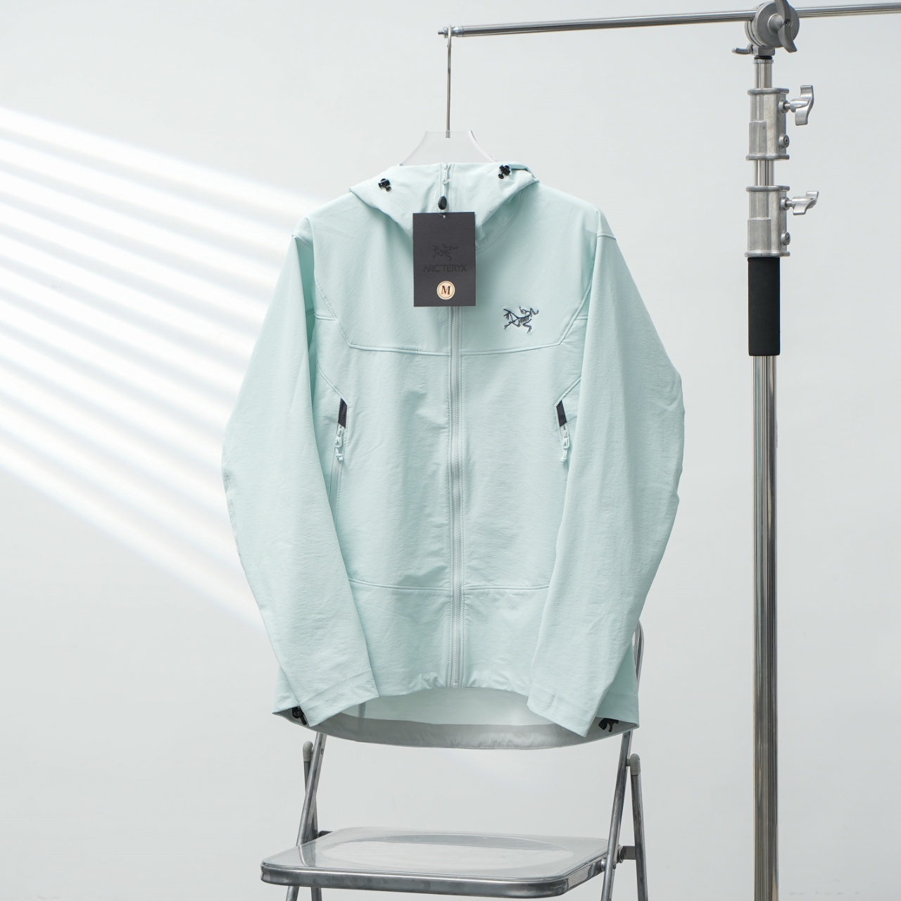 Factory direct Arc'teryx GAMMA HOODY softshell jacket in ether blue, sizes S-XXL.