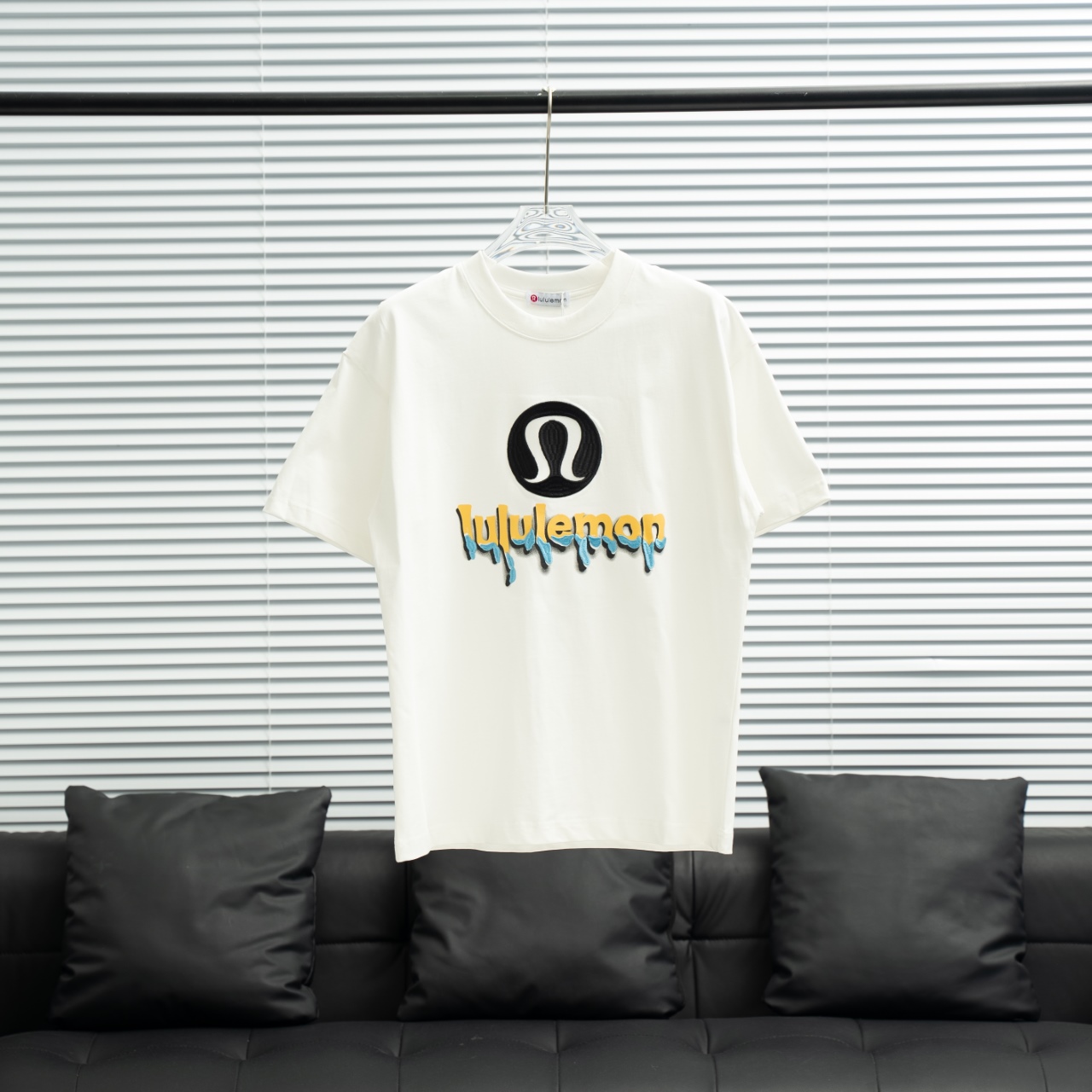 Lululemon embroidered logo short sleeve T-shirt. Sizes: S-XXL. Colors: Black, White.