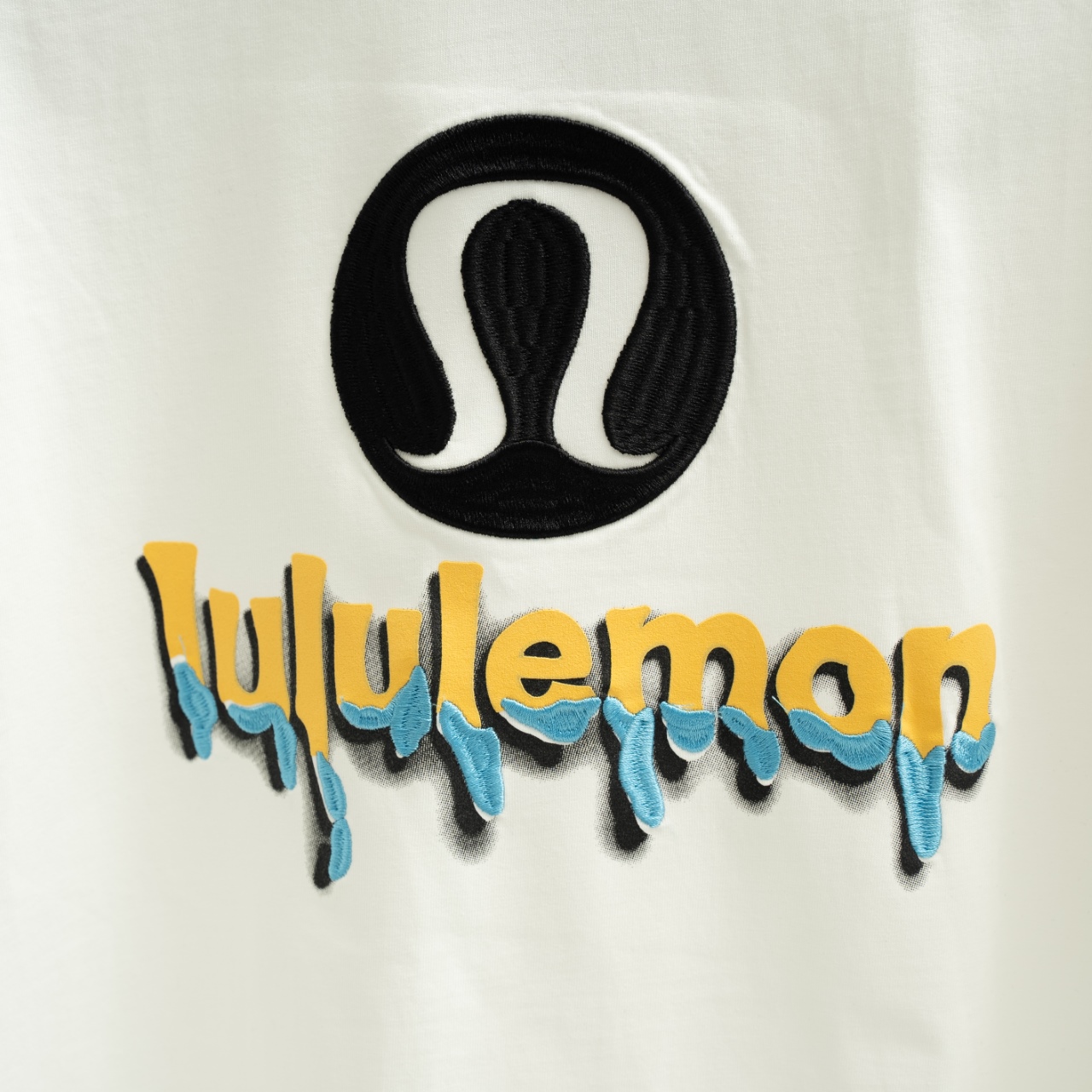 Lululemon embroidered water droplet logo short sleeve T-shirt. Sizes: S-XXL. Colors: Black, White.