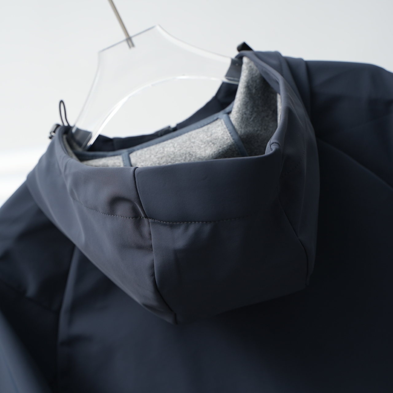 Factory direct Arc'teryx embroidered softshell hooded jacket in ripple gray, sizes S-XXL.