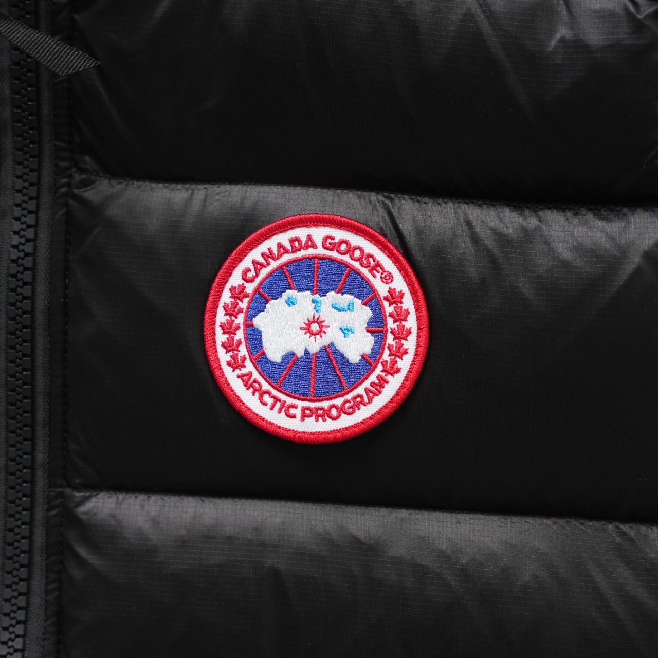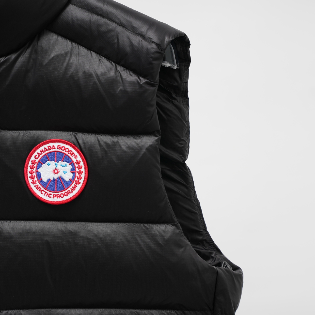 Canada Goose Vest Model 2229 Lightweight Stand Collar. Color: Black Red Logo. Sizes: XS-XXL.