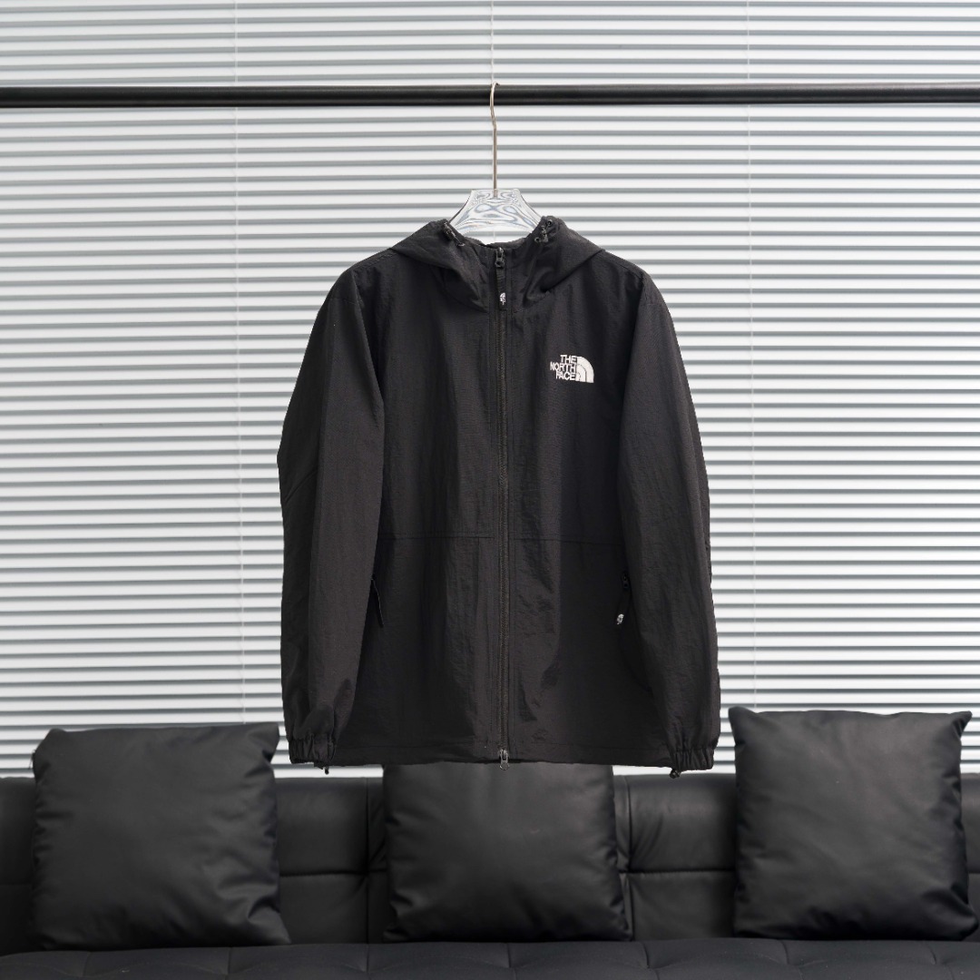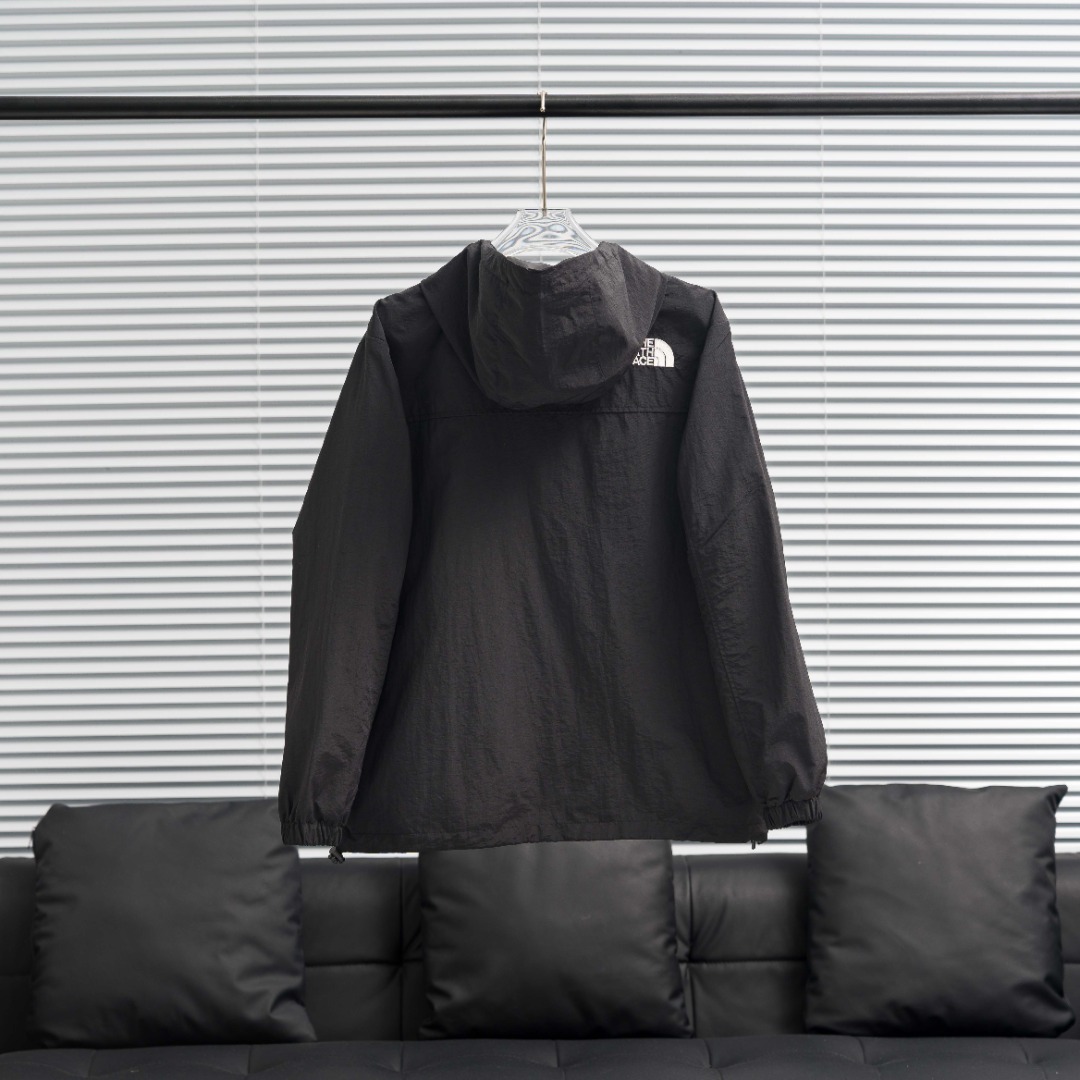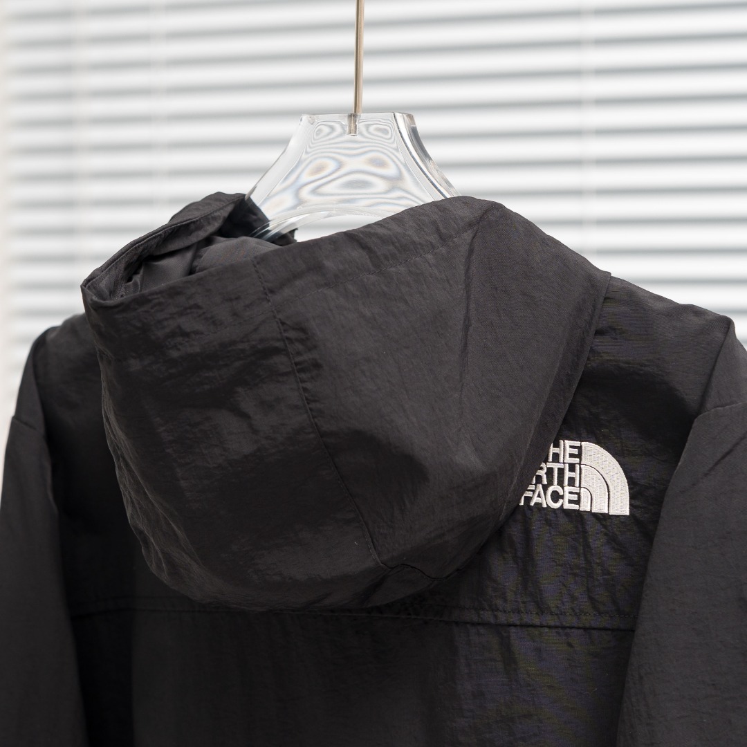 TNF North Face BQ06 solid color embroidered hooded windbreaker. Colors: Black. Sizes: S-XXL.