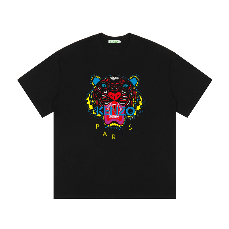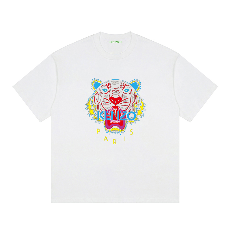 KENZO Tiger Head Print Round Neck Short-Sleeve T-Shirt 20 Early Spring New Short T Front 3D Custom LOGO Print, 100% Ice Porcelain Cotton Smooth Fabric Loose Casual Versatile Fit