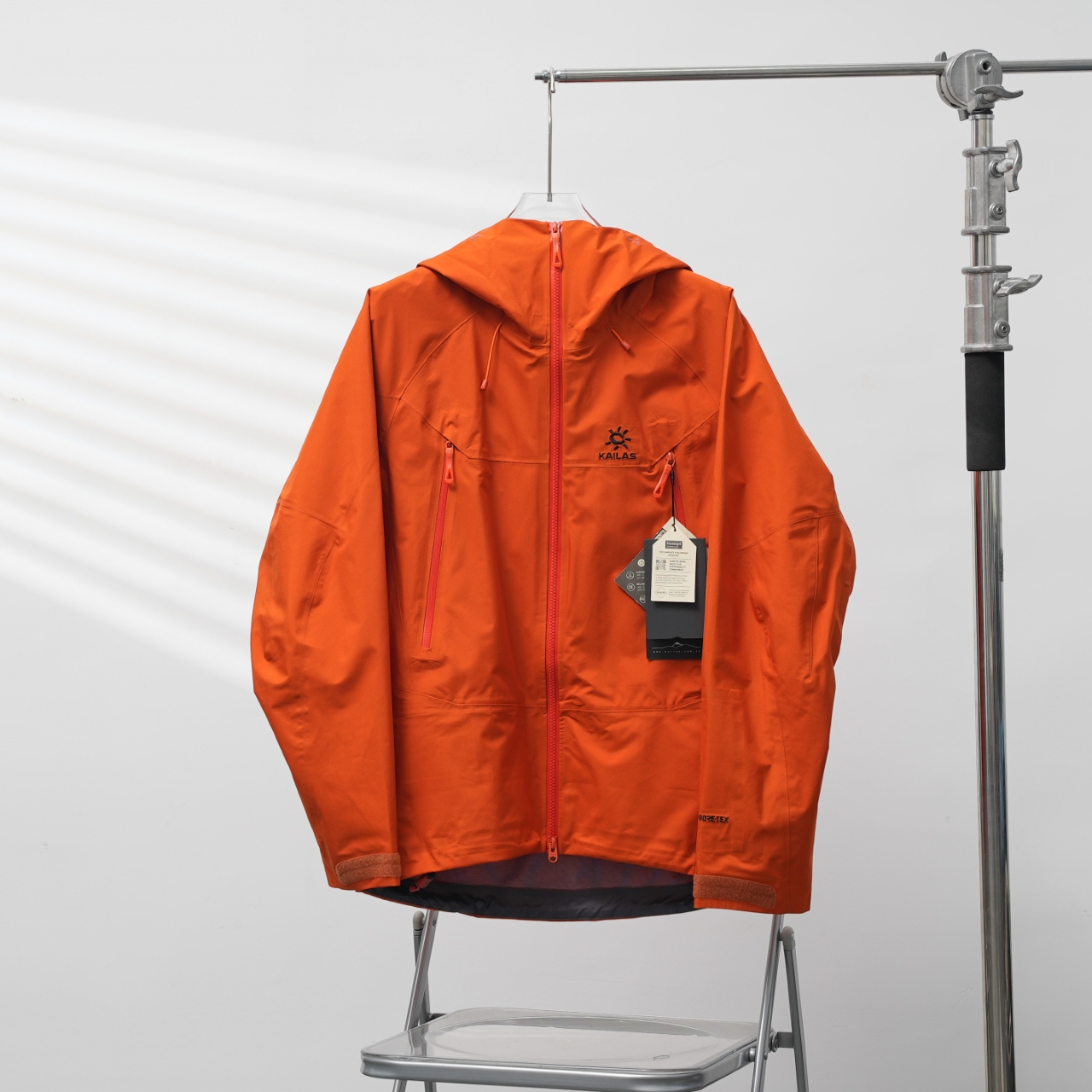 KAILAS Mont X Hooded Jacket in Orange, sizes XXS-XXL.
