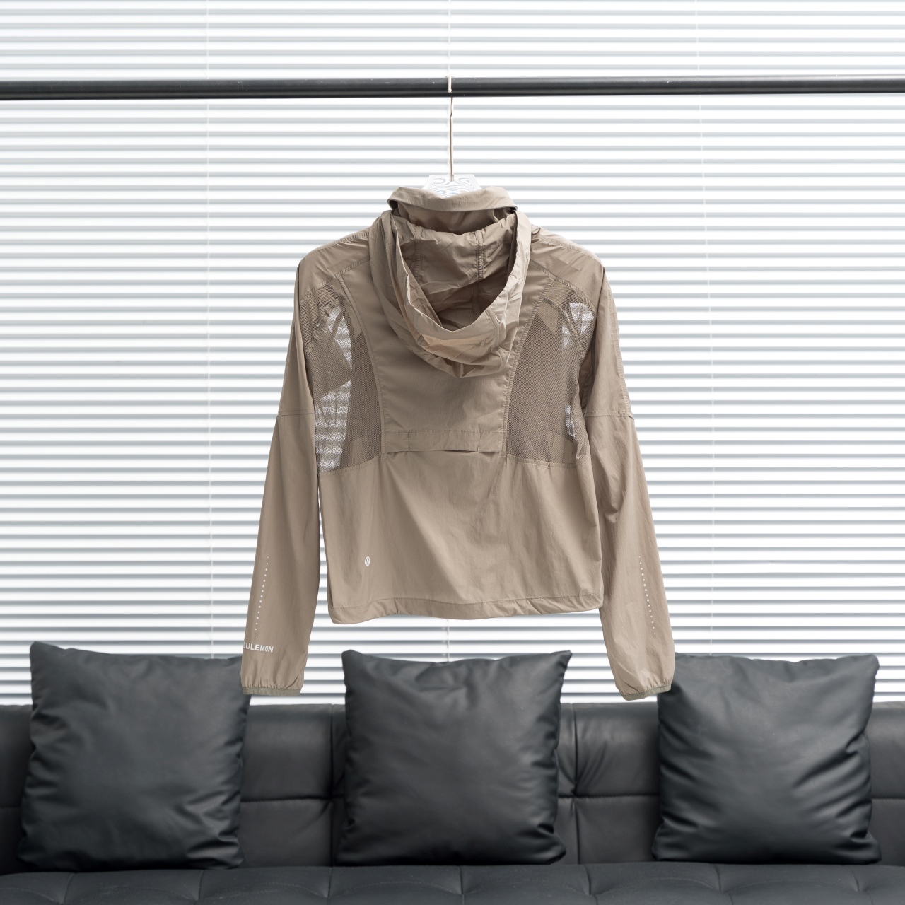 Lululemon Ventilated series mesh sun hoodie. Sizes: 2, 4, 6, 8. Colors: Black, White, Beige, Brown.