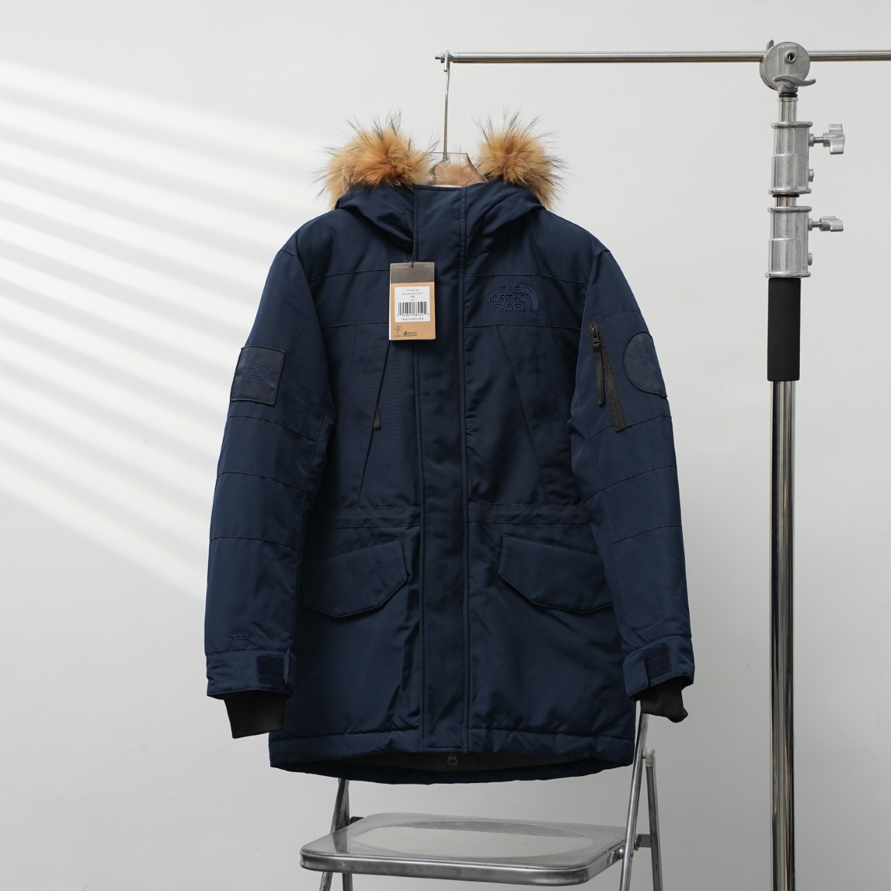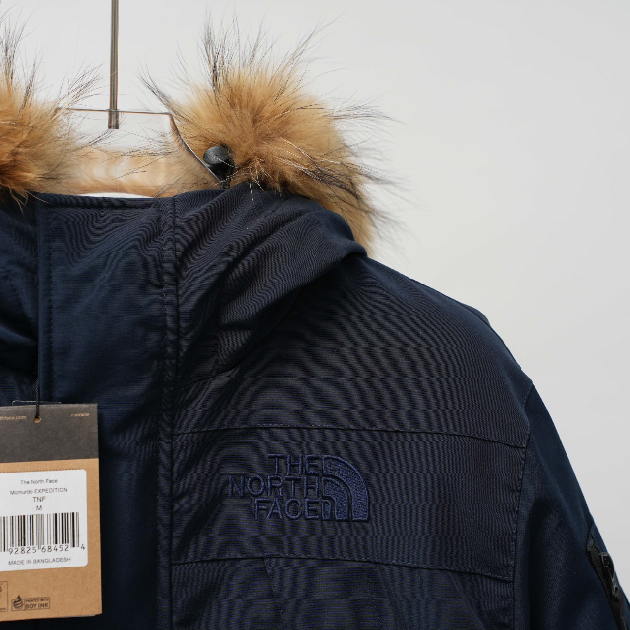 TNF North Face Expedition Solid Hooded Fur-Trim Down Jacket. Colors: Navy Blue. Sizes: XS-XXL.