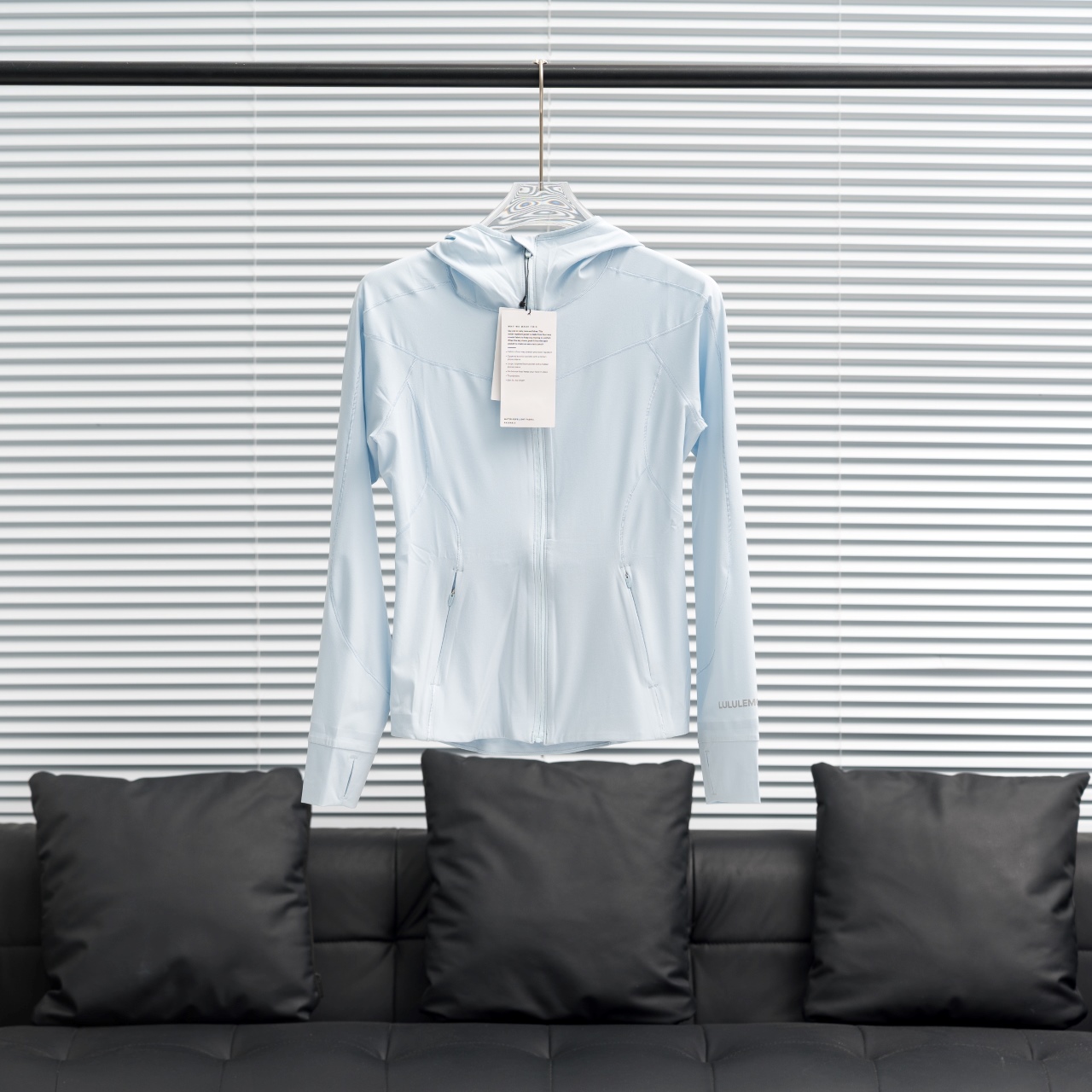 Lululemon Mist Over Windbreaker women's slim-fit solid color windbreaker. Colors: black, white, powder blue, pink. Sizes: 2, 4, 6, 8.