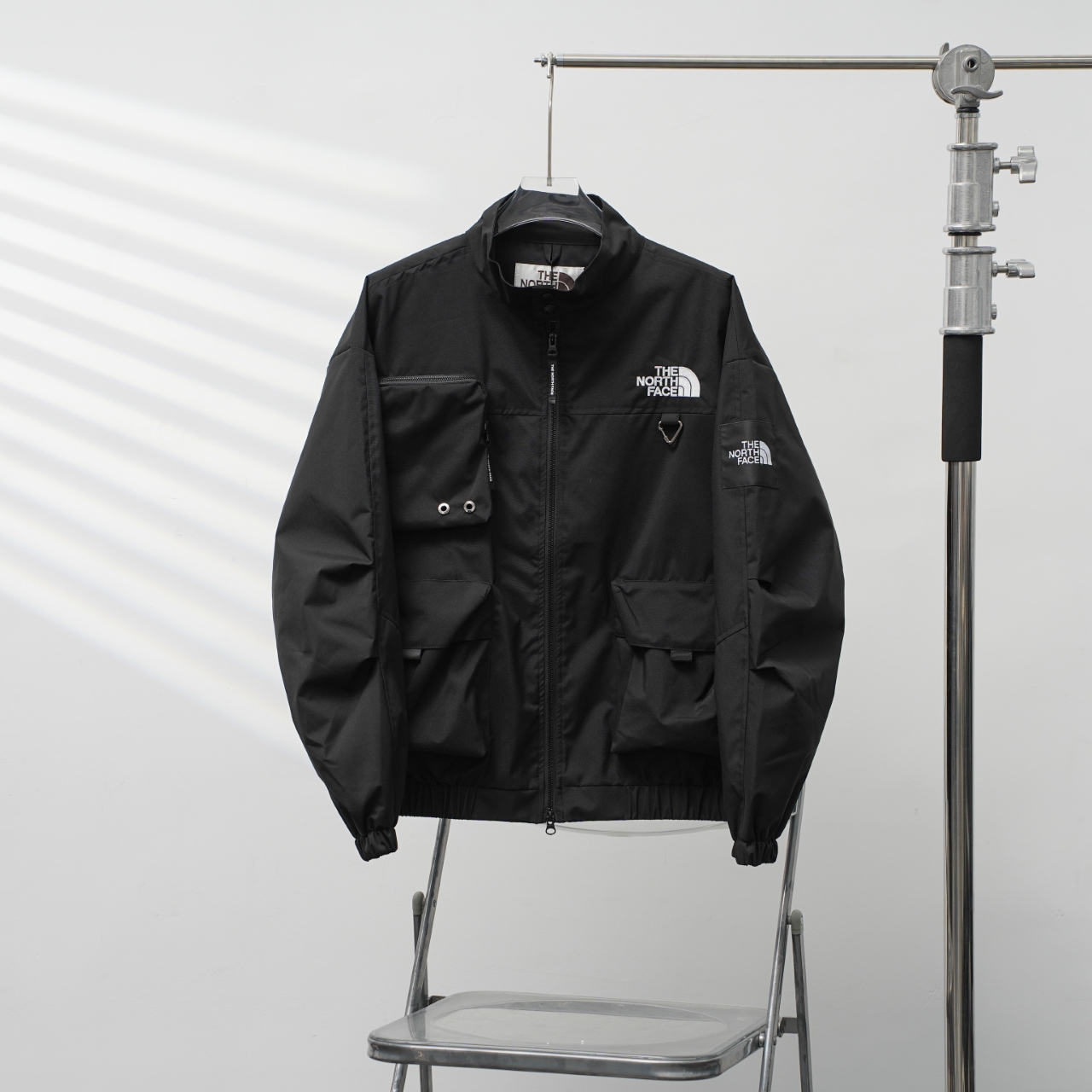 TNF North Face NJ3BR02 Korean-style three-pocket stand collar jacket. Color: Black. Sizes: S-XXL.