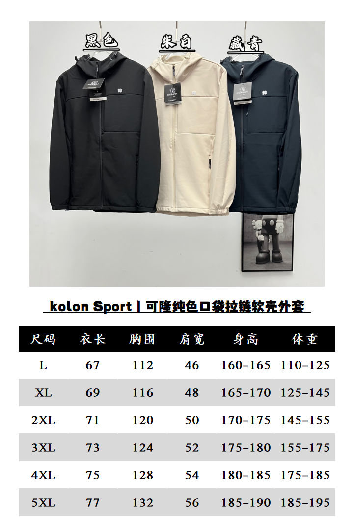 Kolon Sport Solid Color Zippered Pocket Softshell Jacket, Sizes L to 5XL.