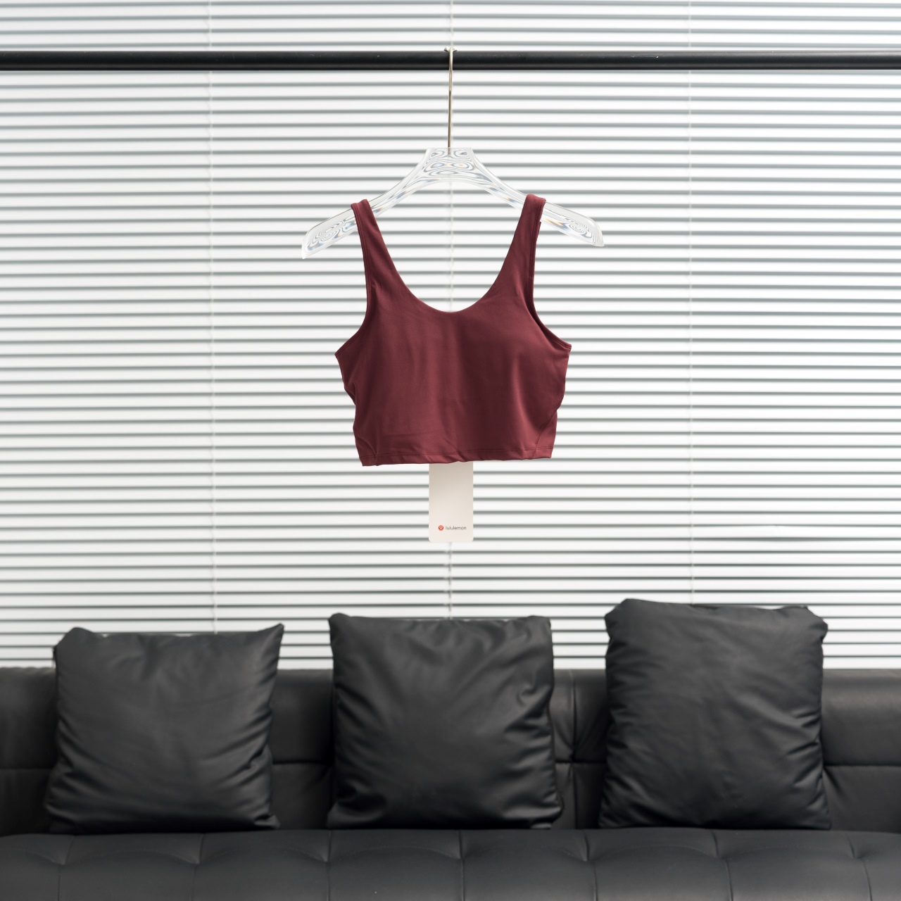 Factory direct Lululemon U-shaped sports bra in dark red, sizes 2-12.