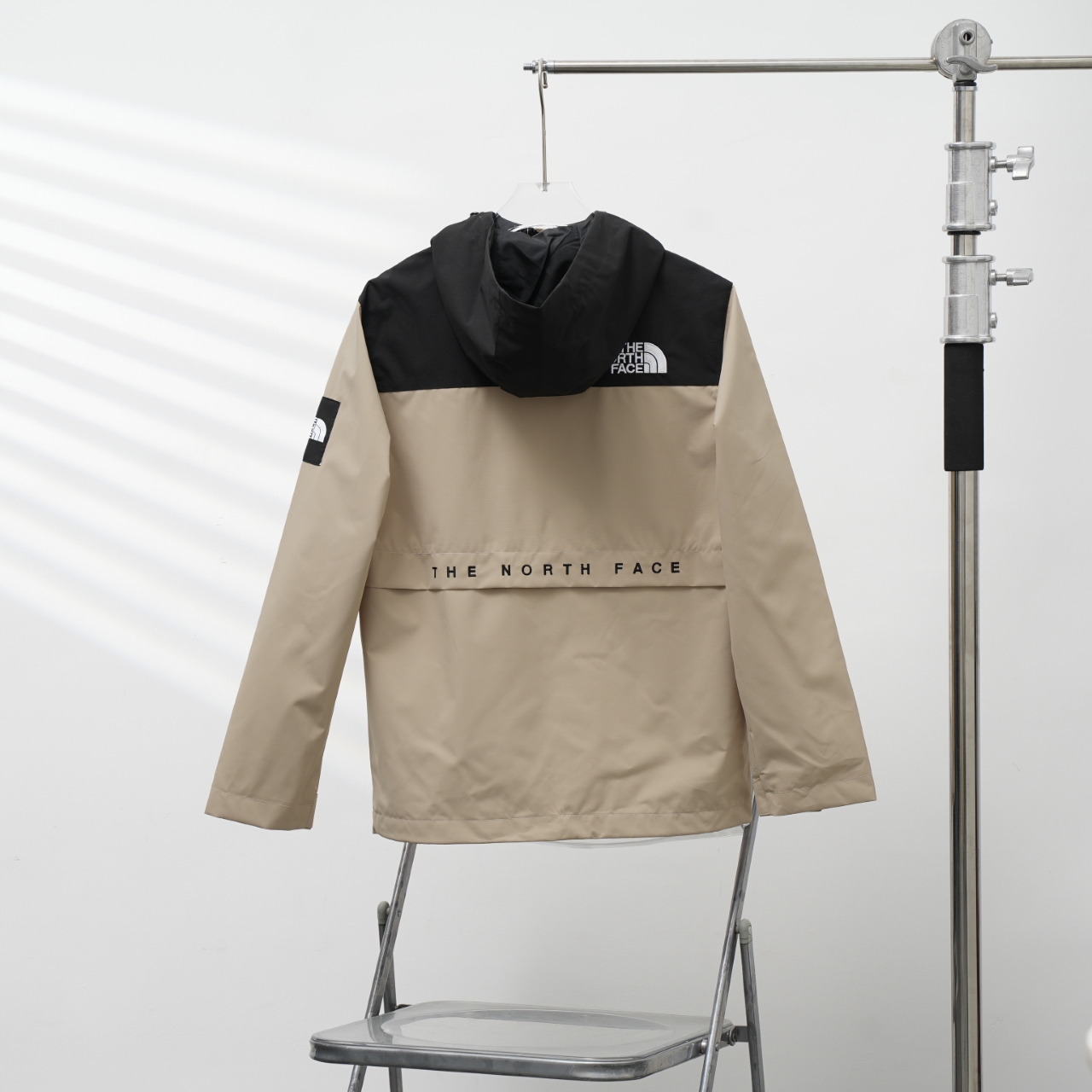 TNF North Face Korean version 1986 embroidered hooded windbreaker. Color: Khaki. Sizes: S-XXL.