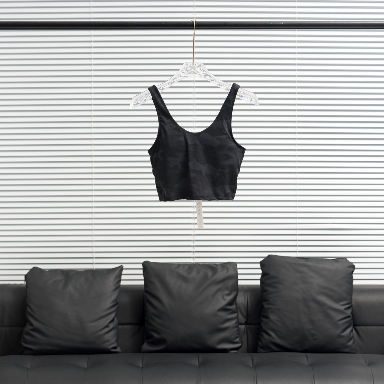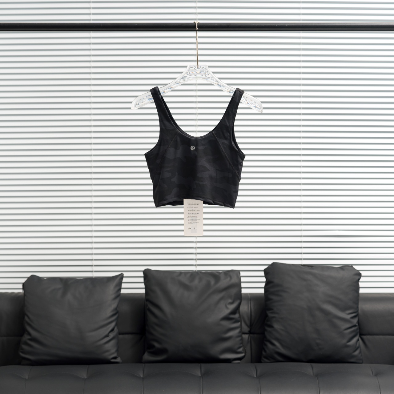 Factory direct Lululemon U-shaped sports bra in black camo, sizes 2-12.