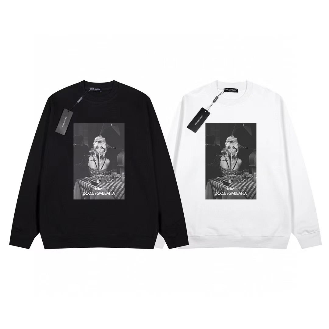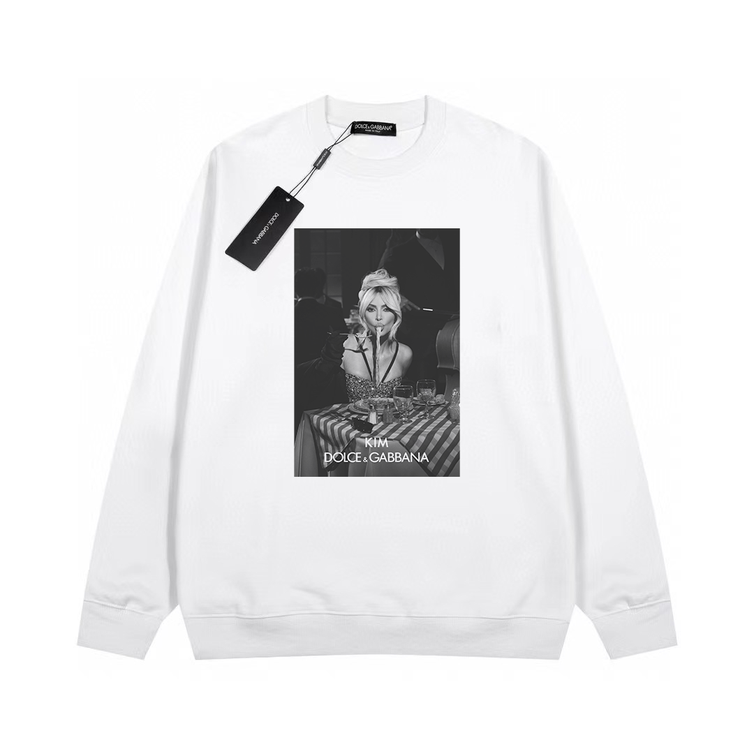 Dolce & Gabbana printed round neck sweatshirt The most anticipated sweatshirt for the 2024 spring and autumn season High-end custom premium series Belongs to the brand's high-end main line Patent top-grade cotton Reinterpreting conventional styles with innovation Fabric configuration is颠覆常往 (Note: "颠覆常往" appears to be a typo/error; possible intended meaning "颠覆常规" - subverting conventions) Details are noteworthy