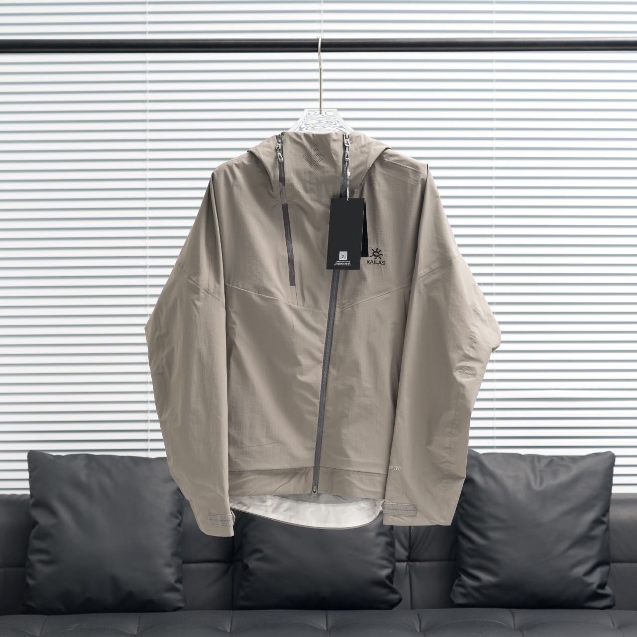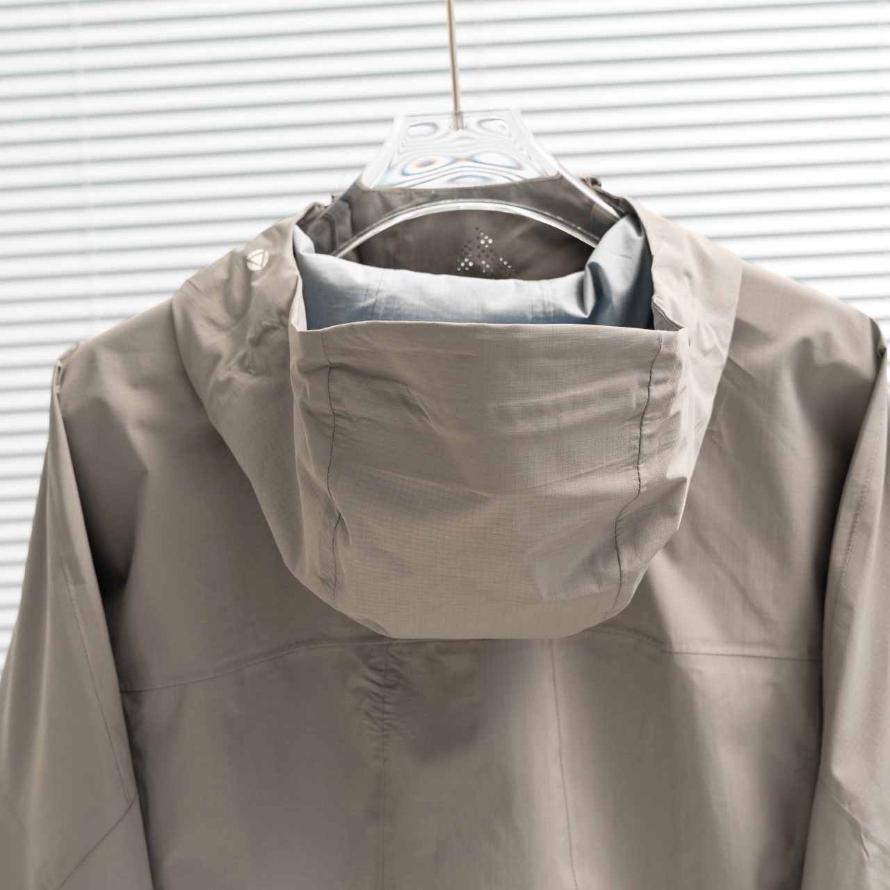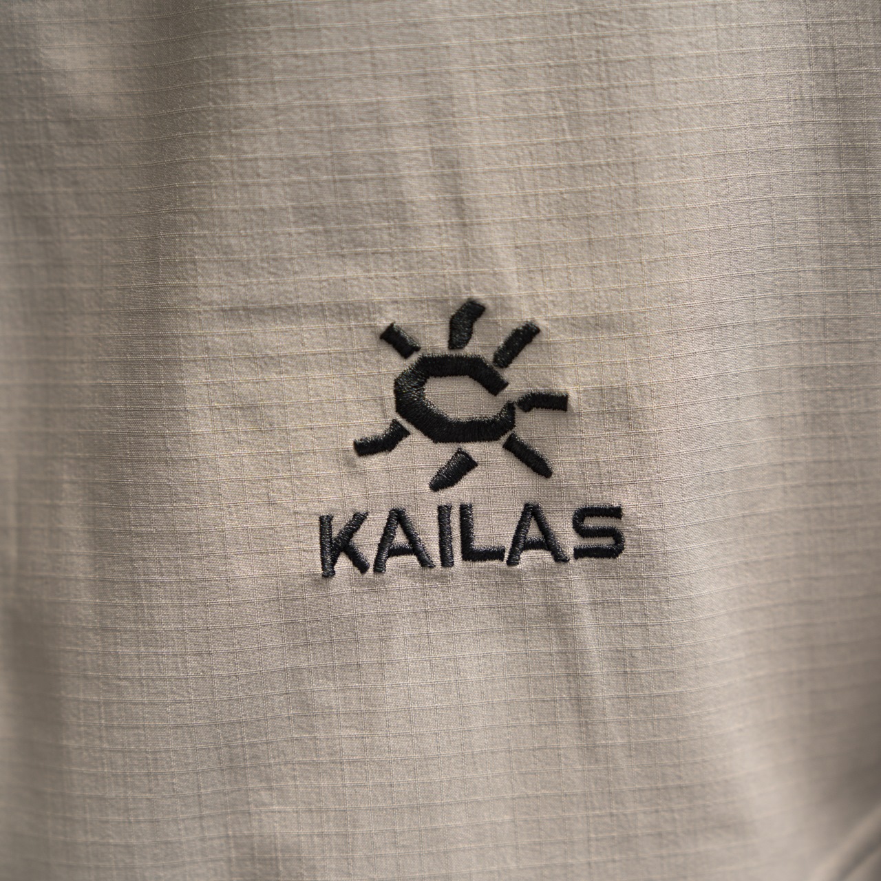 KAlLAS Kailas Suosong FLT Taped Seam Embroidered Logo Hooded Windbreaker. Colors: Sky Blue, Stone Lotus Gray. Sizes: S-XXL.