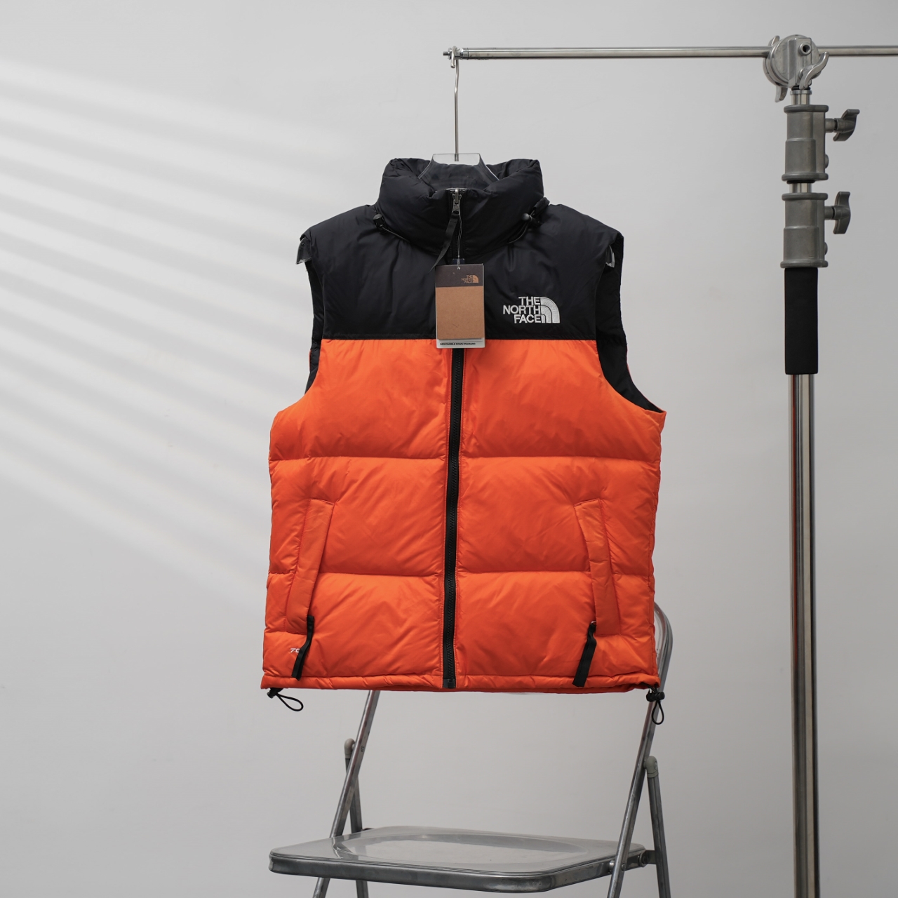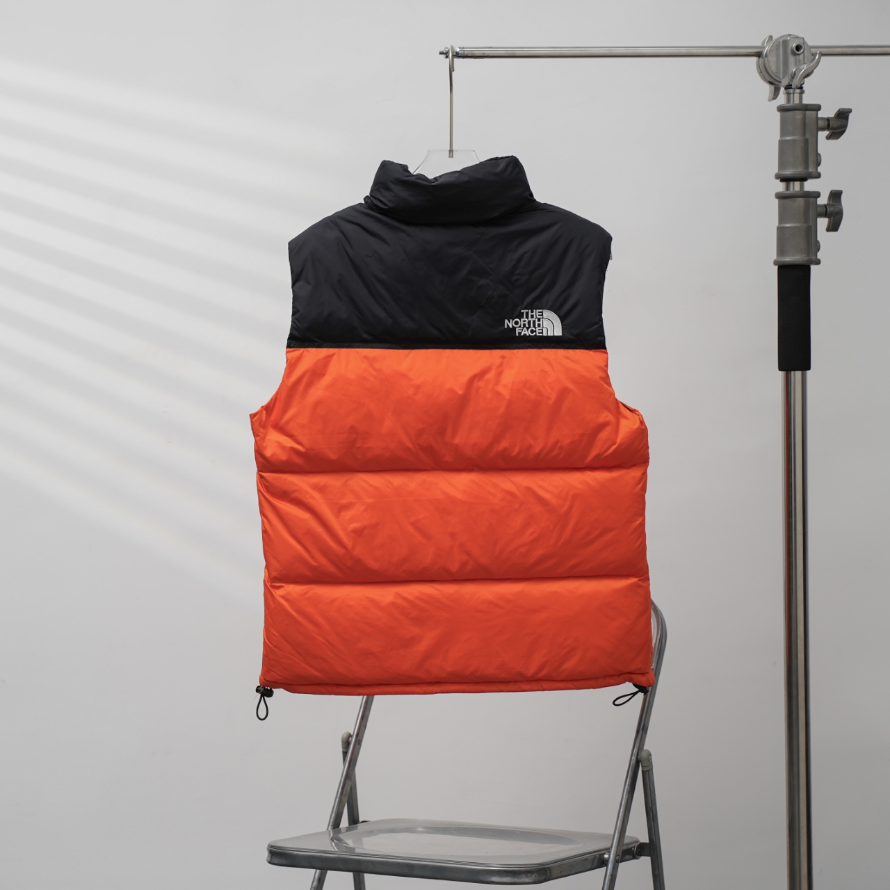 The North Face 1996 Classic Vest in Orange, sizes XS-XXL.
