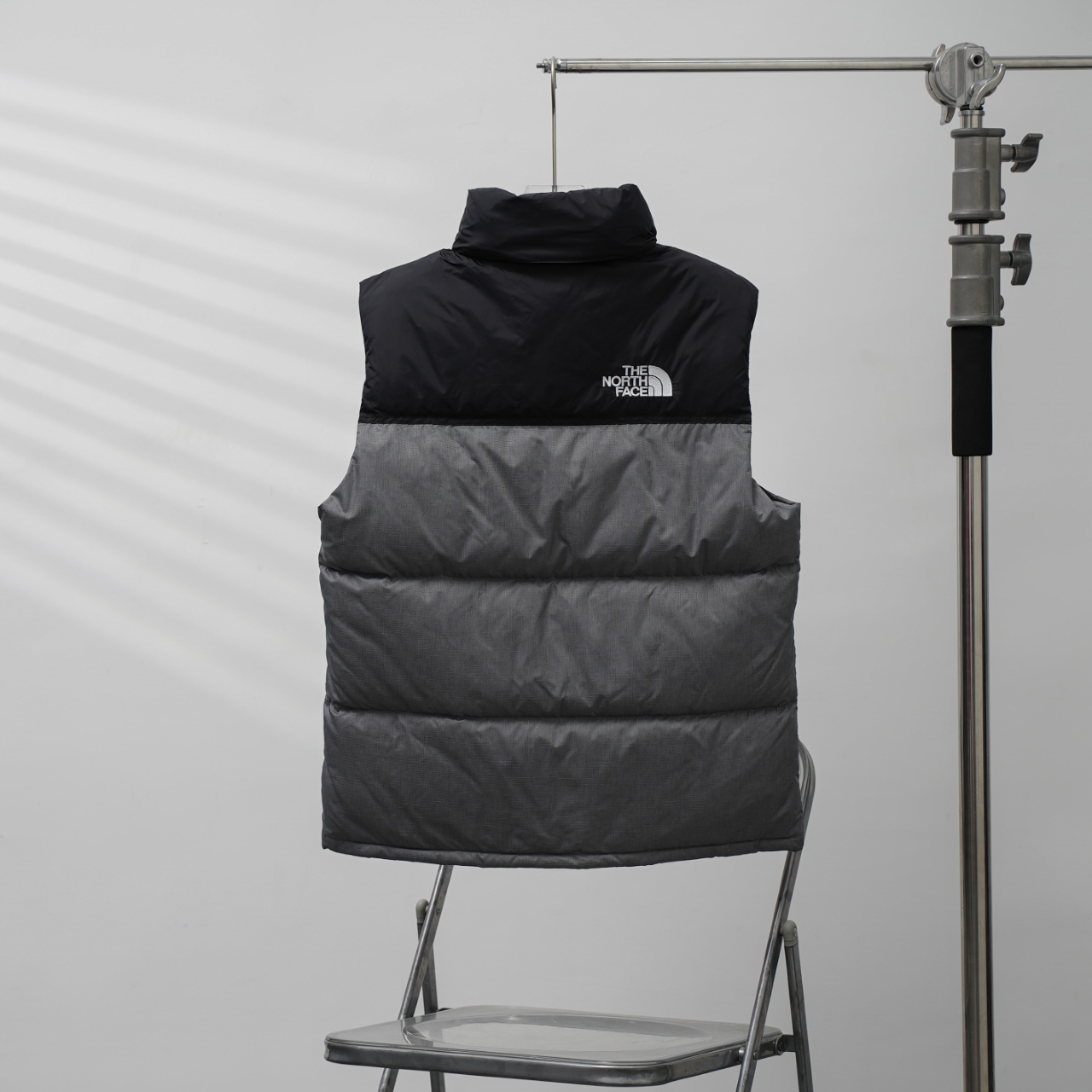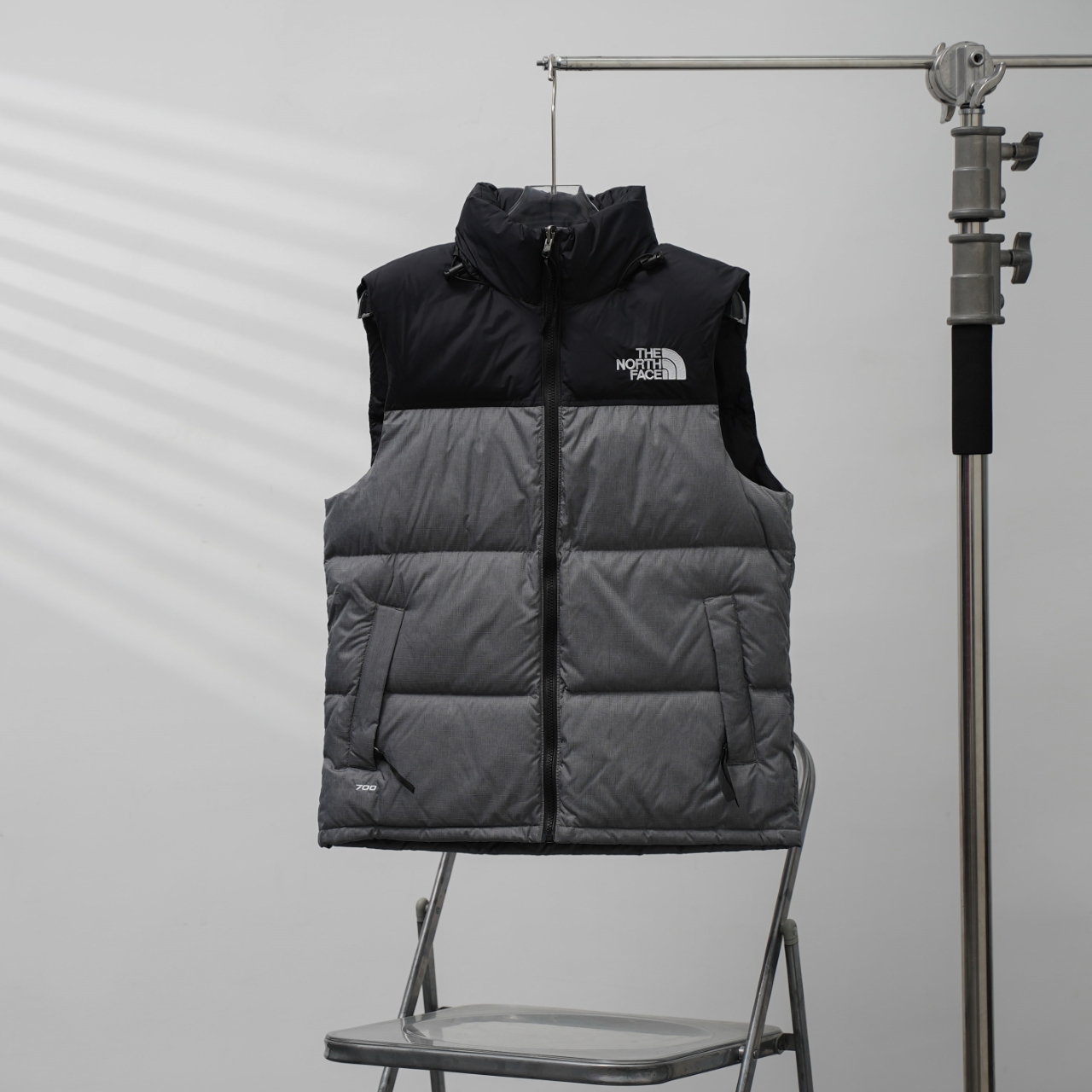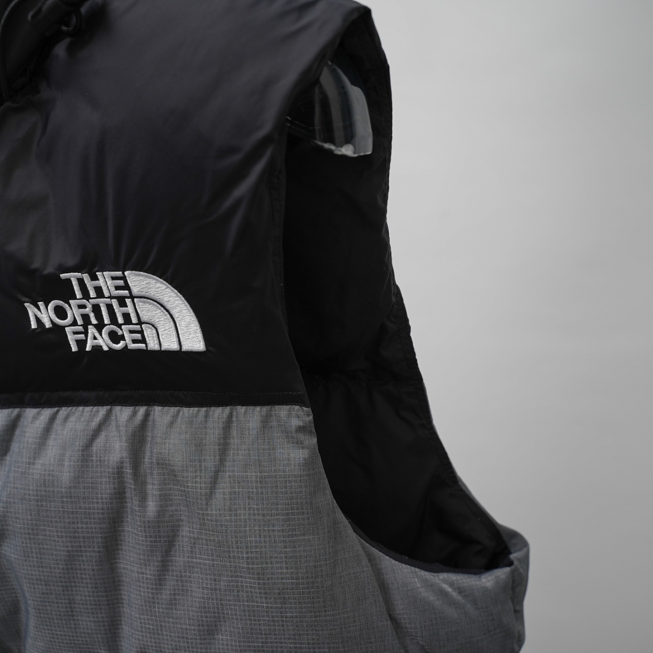 The North Face 1996 Classic Down Vest in Bamboo Gray. Sizes XS-XXL.