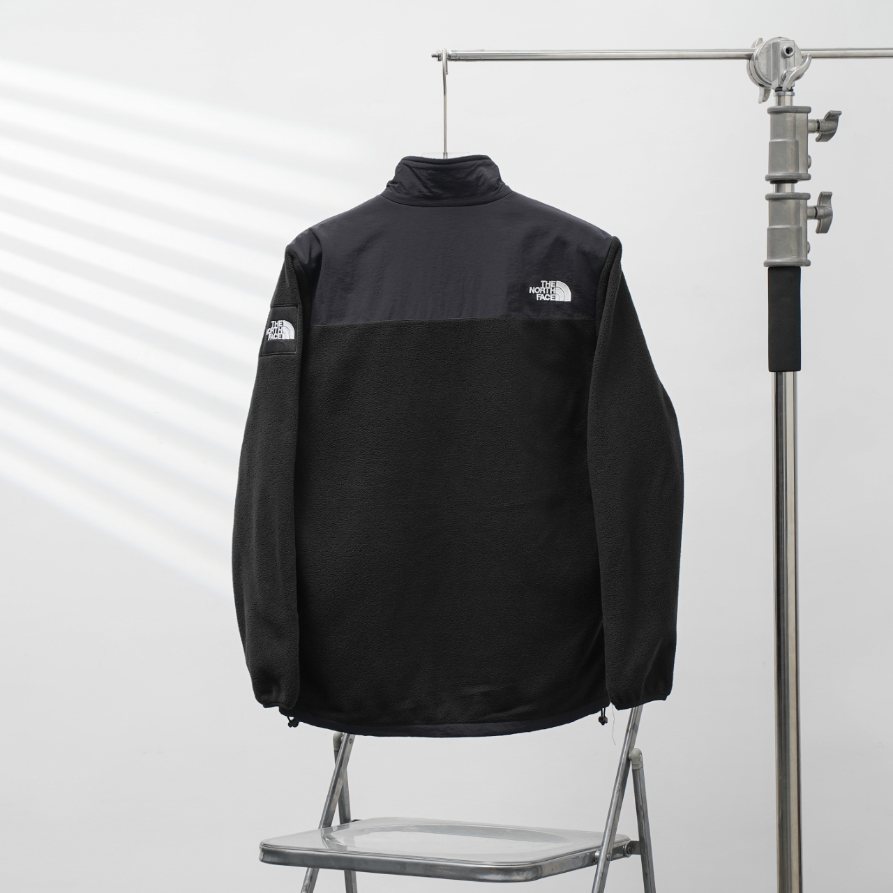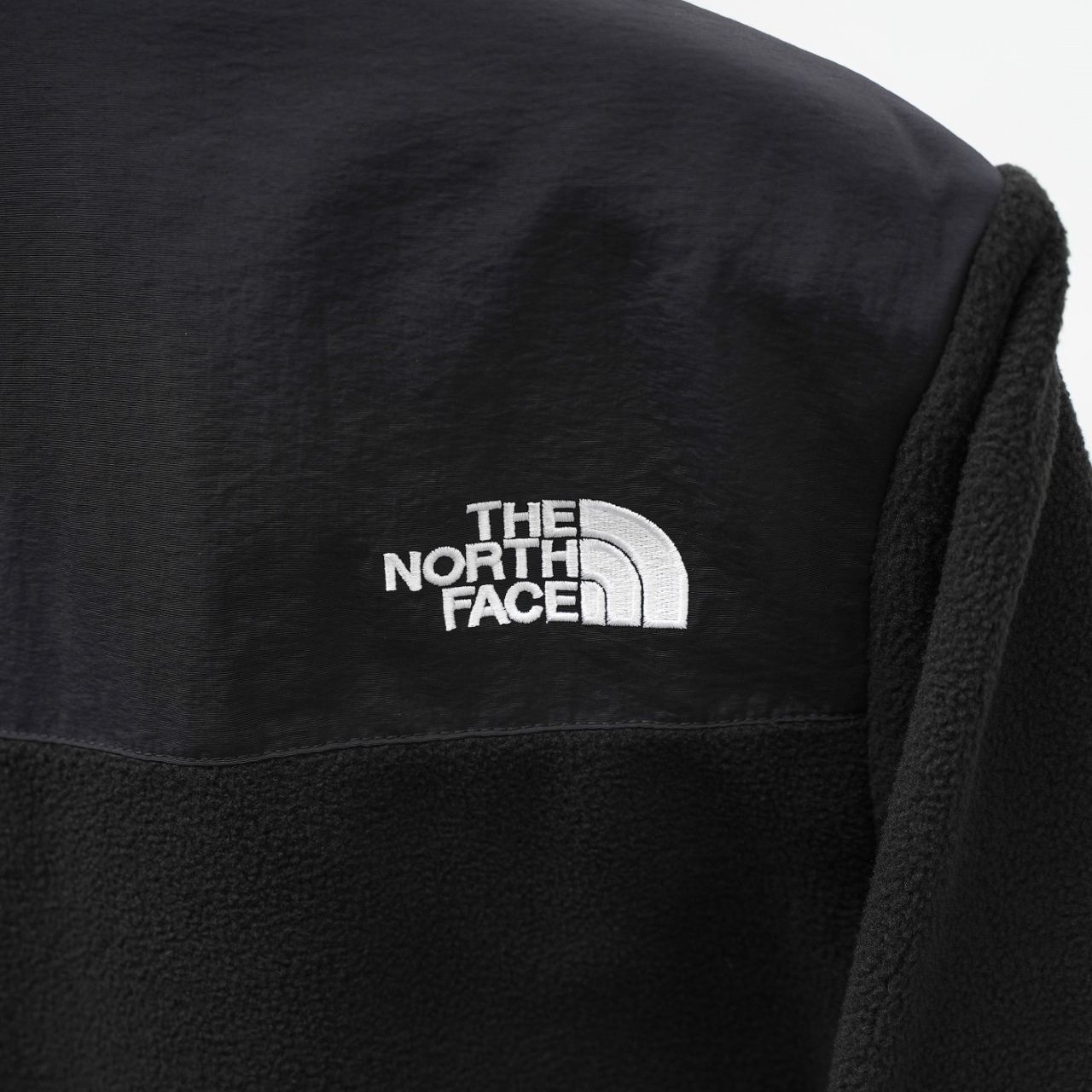 TNF North Face 2051 Korean-style patchwork stand-collar fleece jacket. Color: Black. Sizes: S-XXL.