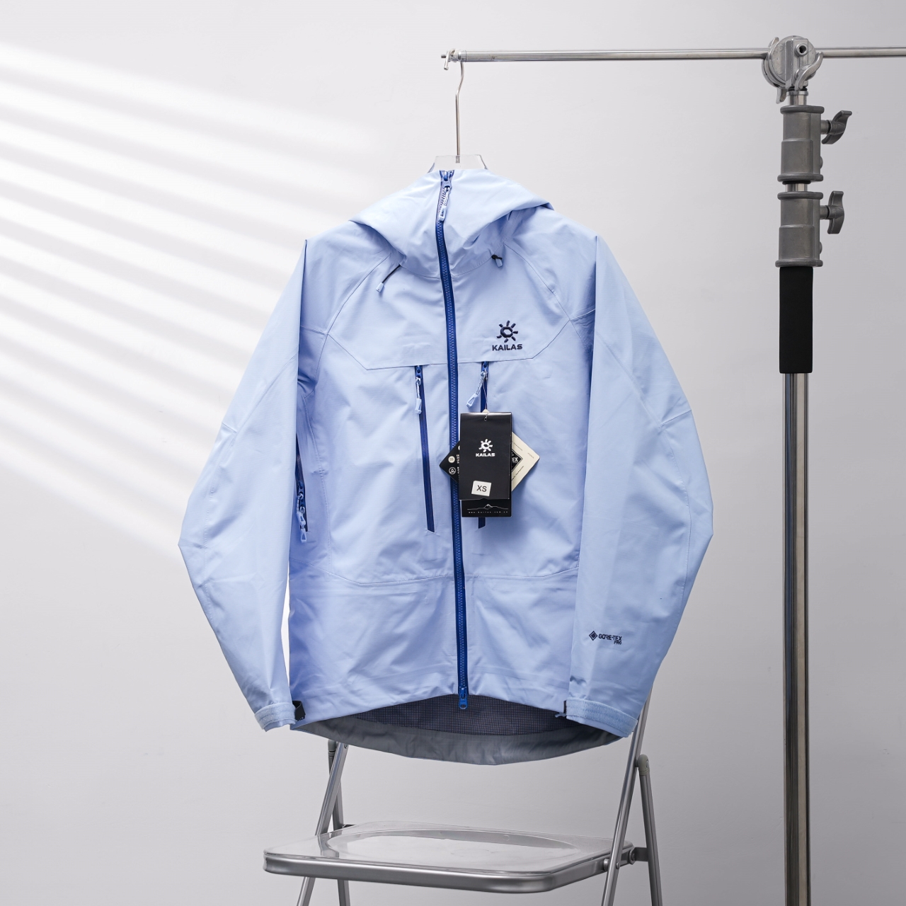KAILAS MOX-PRO Hooded Jacket in Light Blue, sizes XS-XXL.