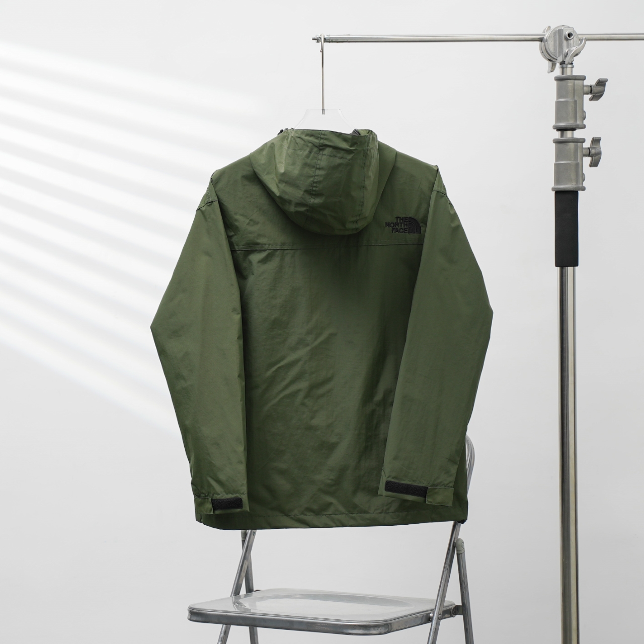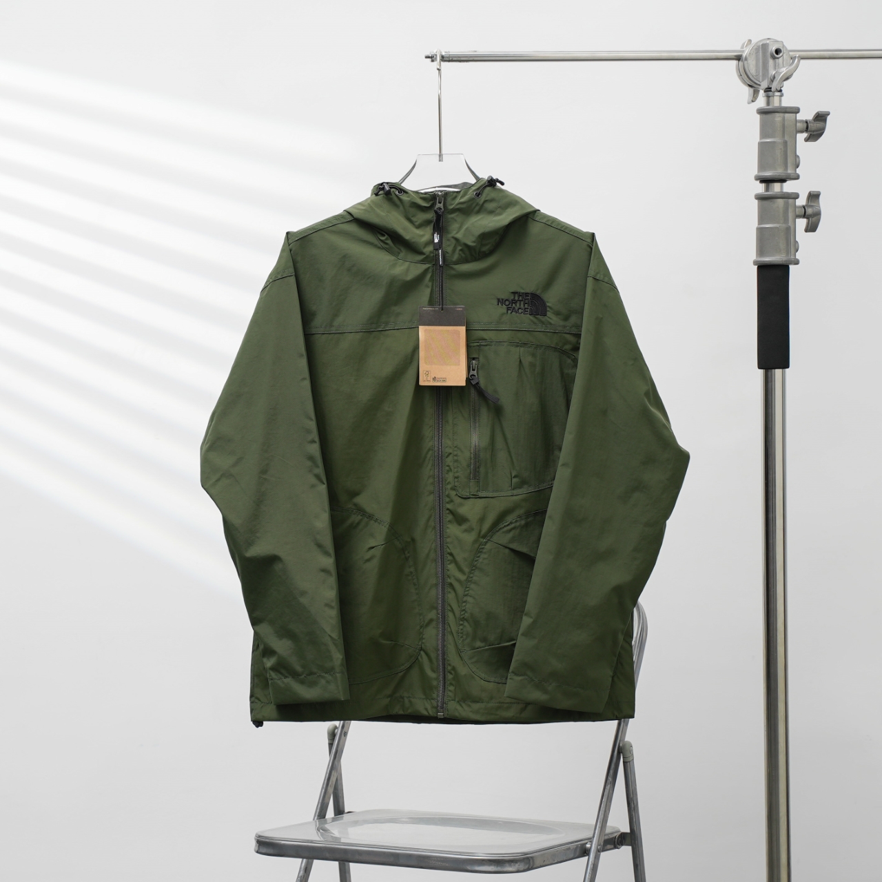 TNF North Face 58 three-pocket embroidered hooded windbreaker in military green, sizes S-XXL.