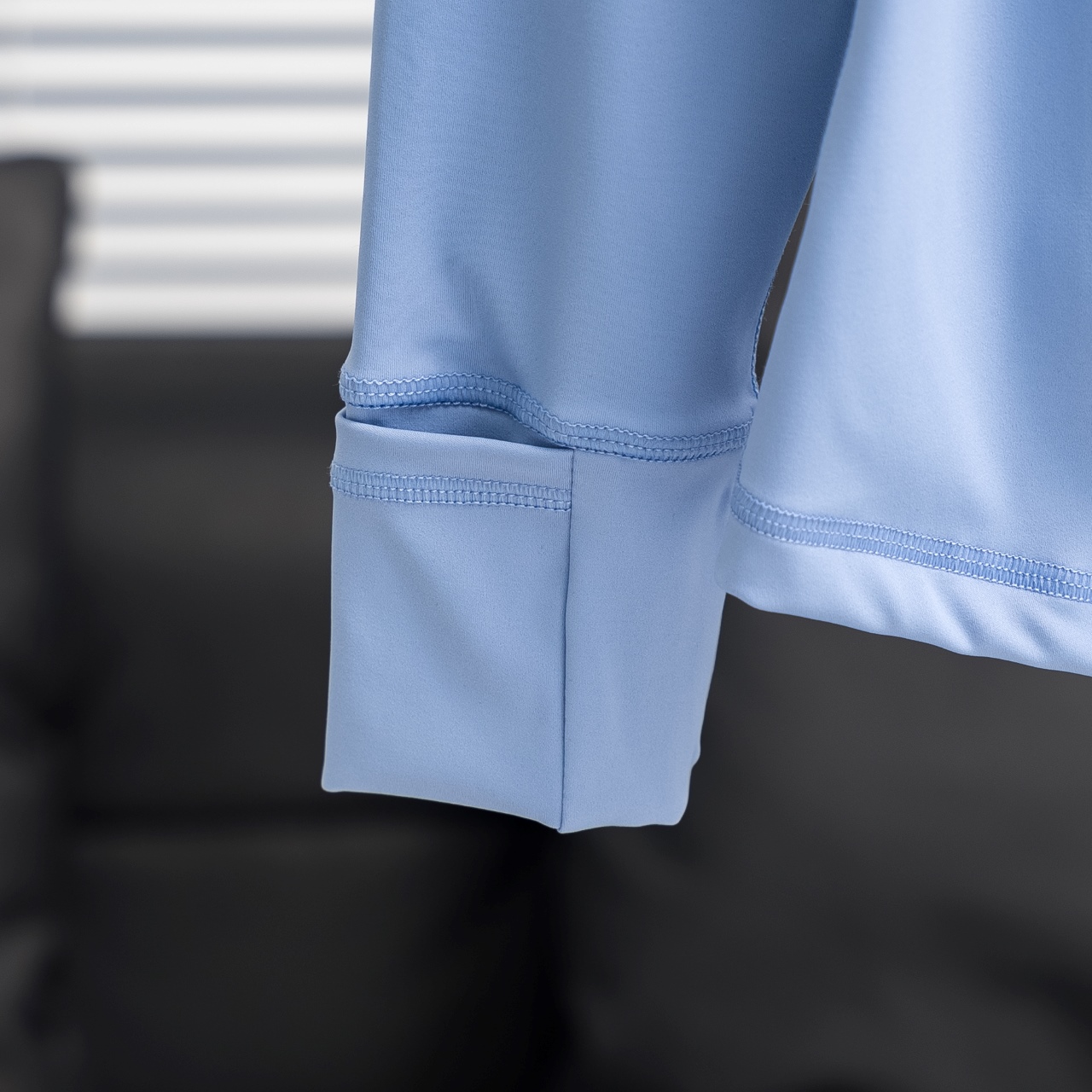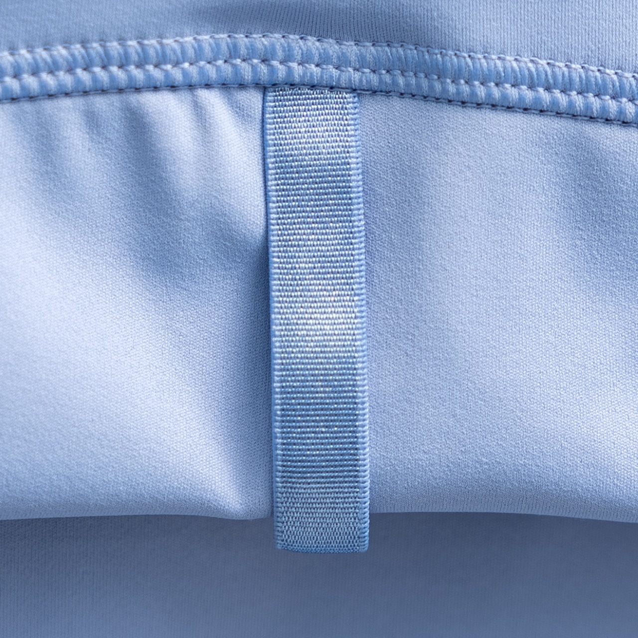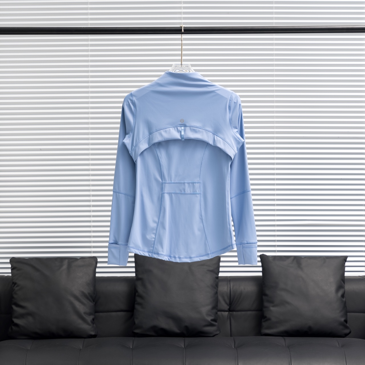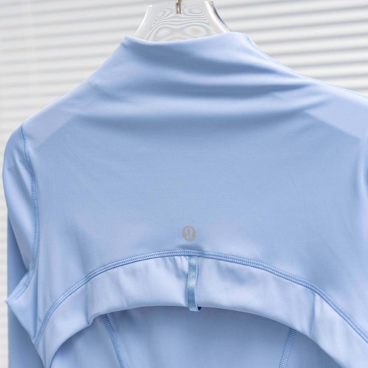 Lululemon Define solid color stand collar yoga suit in haze blue. Sizes 2-12.