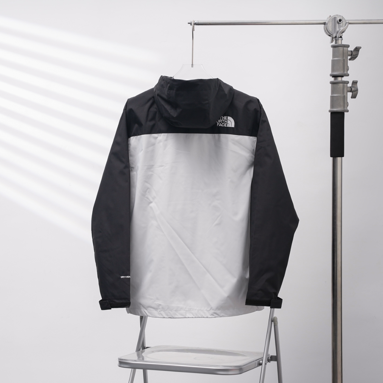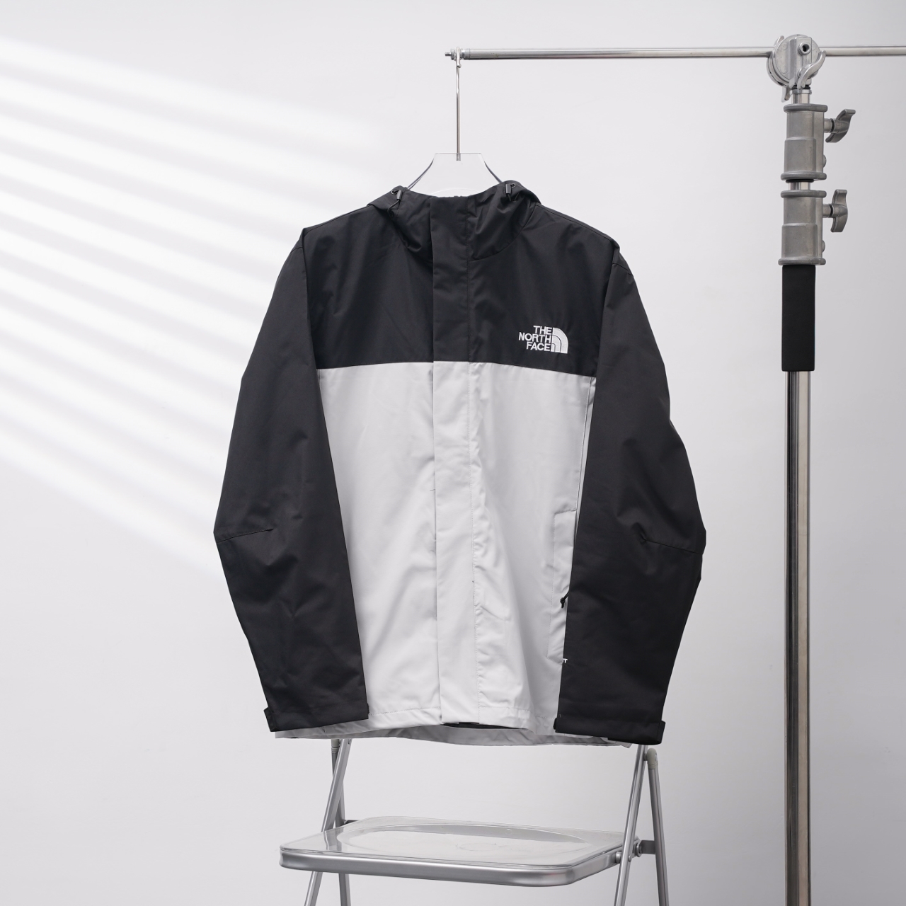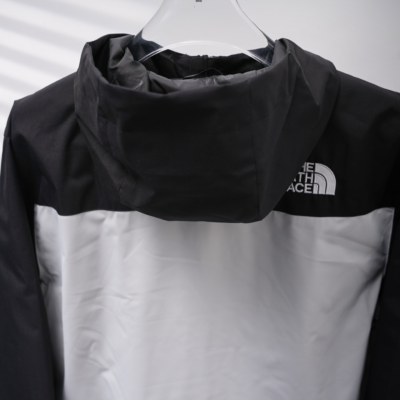 TNF North Face 8DMC embroidered hooded windbreaker in black and white, sizes S-XXL.