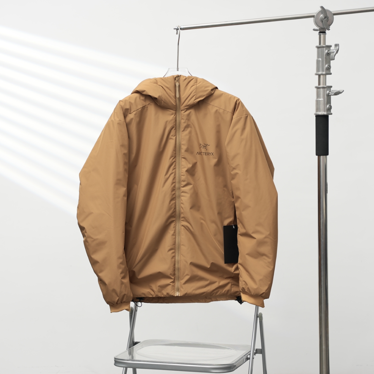 Factory direct Arc'teryx ATOM LT jacket in brown, sizes S-3XL.