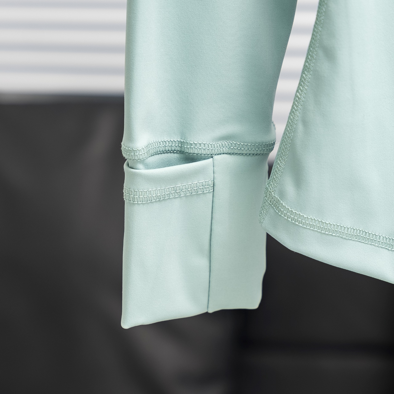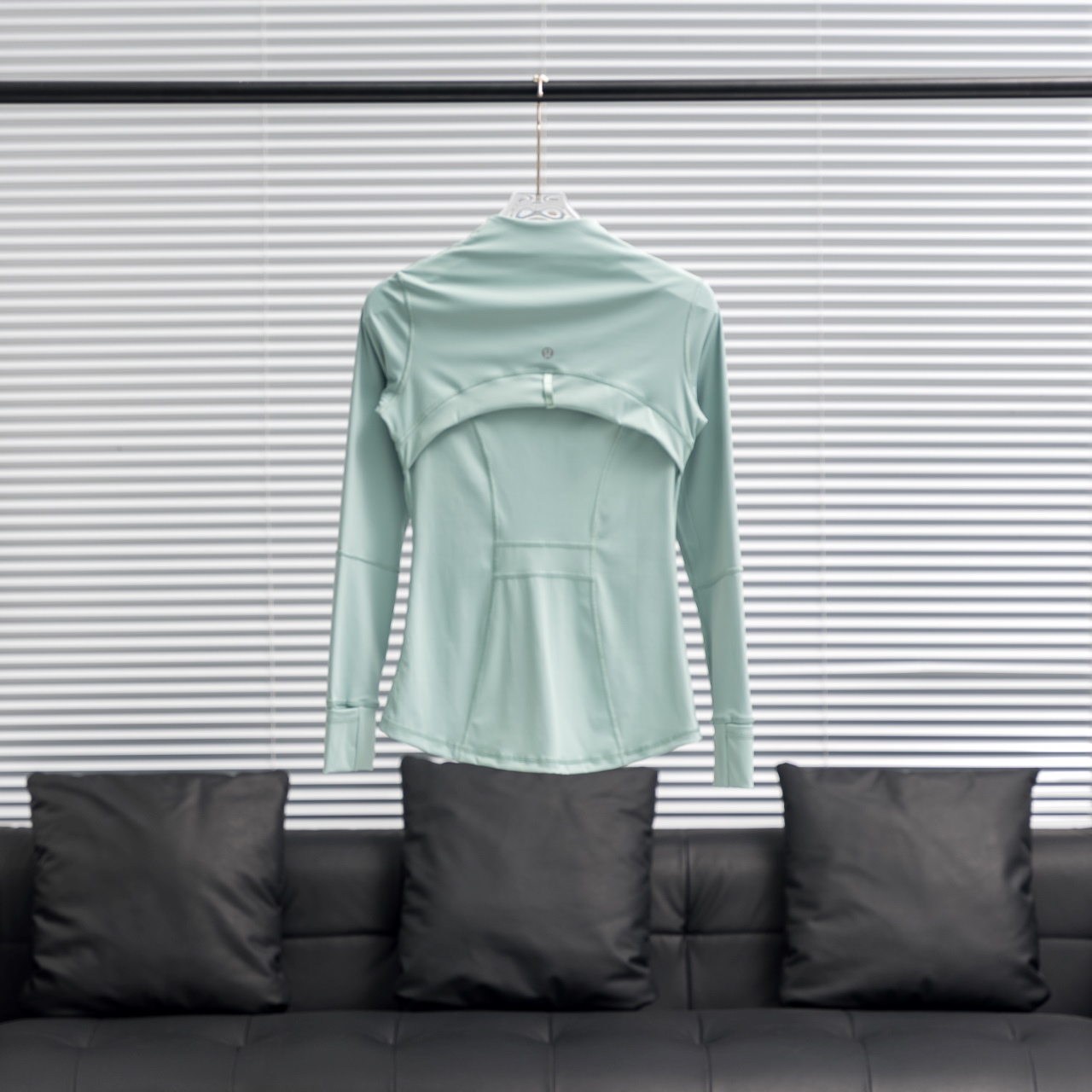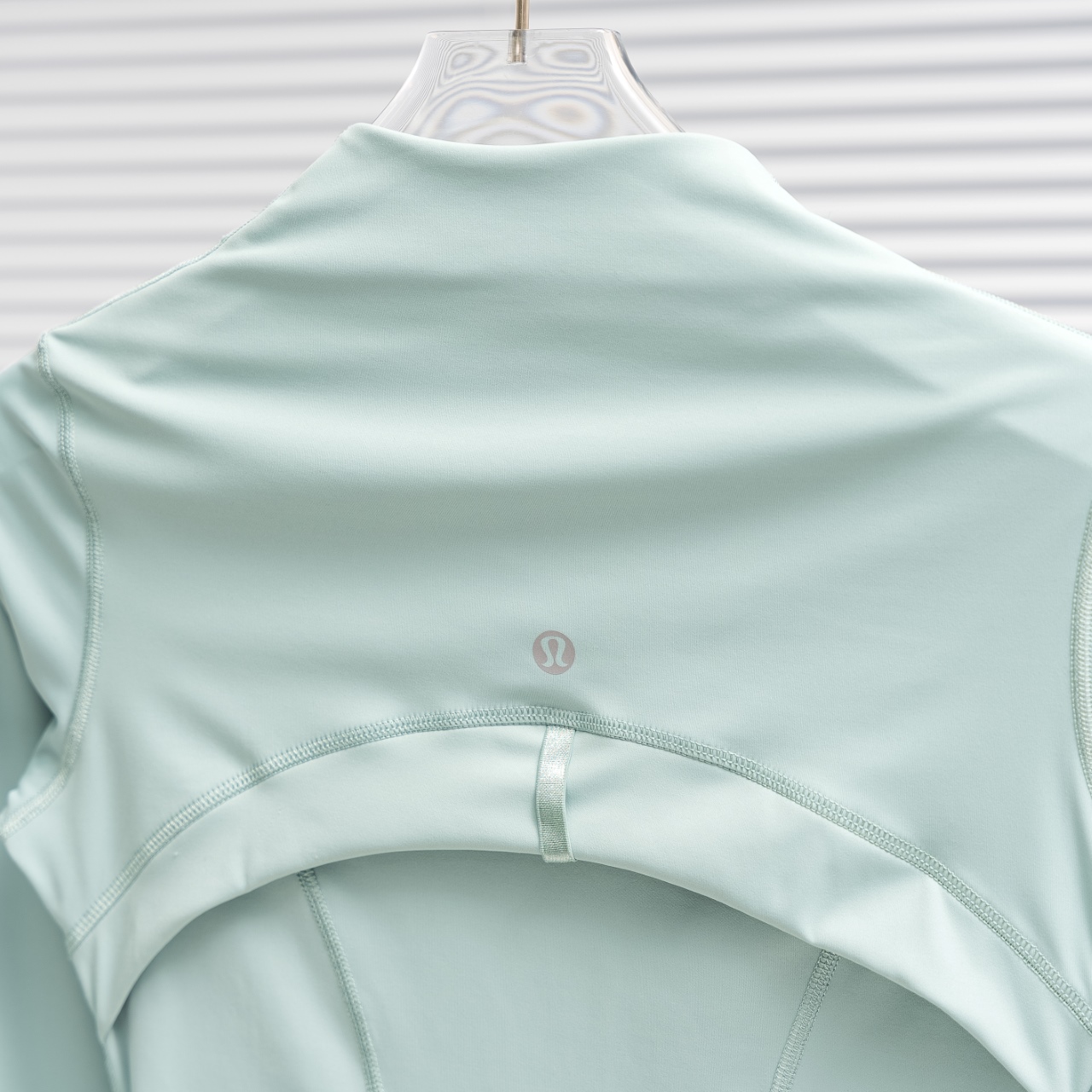 Lululemon Define solid color stand collar yoga suit in crystal green. Sizes 2-12.