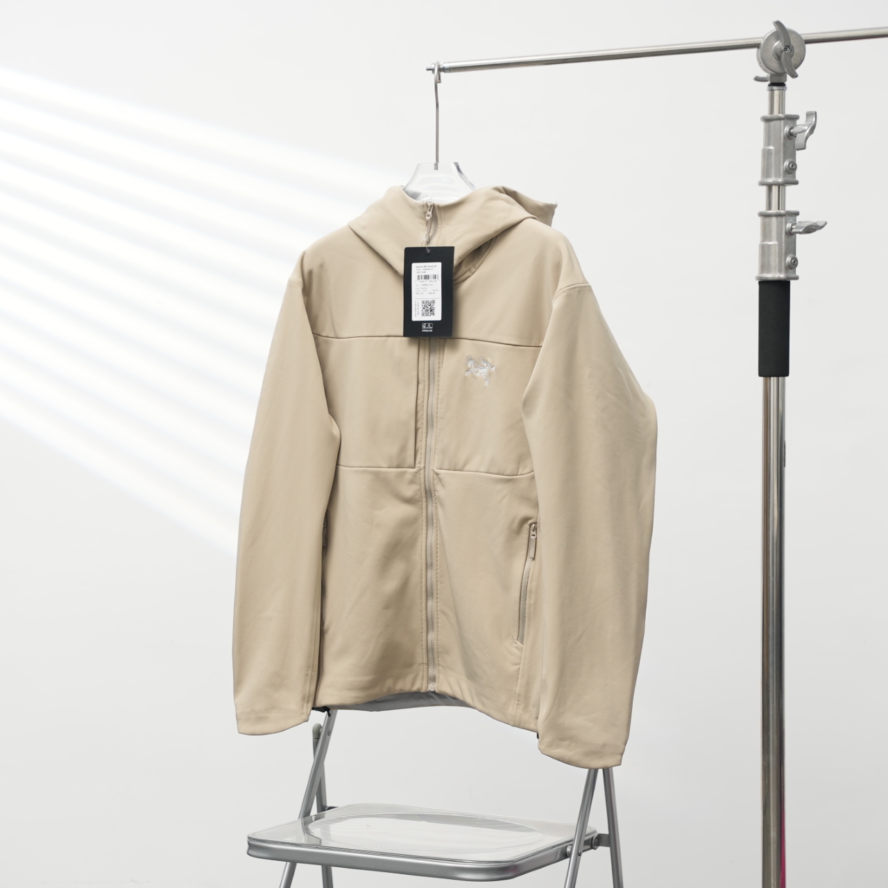 Arc'teryx GAMMA MX Softshell Hoodie in Misty Gray, sizes S-XXL.