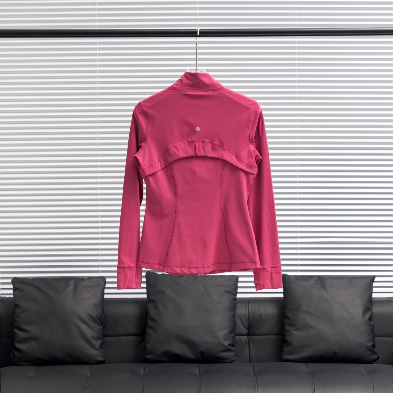Lululemon Define solid color stand collar yoga suit in fuchsia. Sizes: 2 4 6 8 10 12.