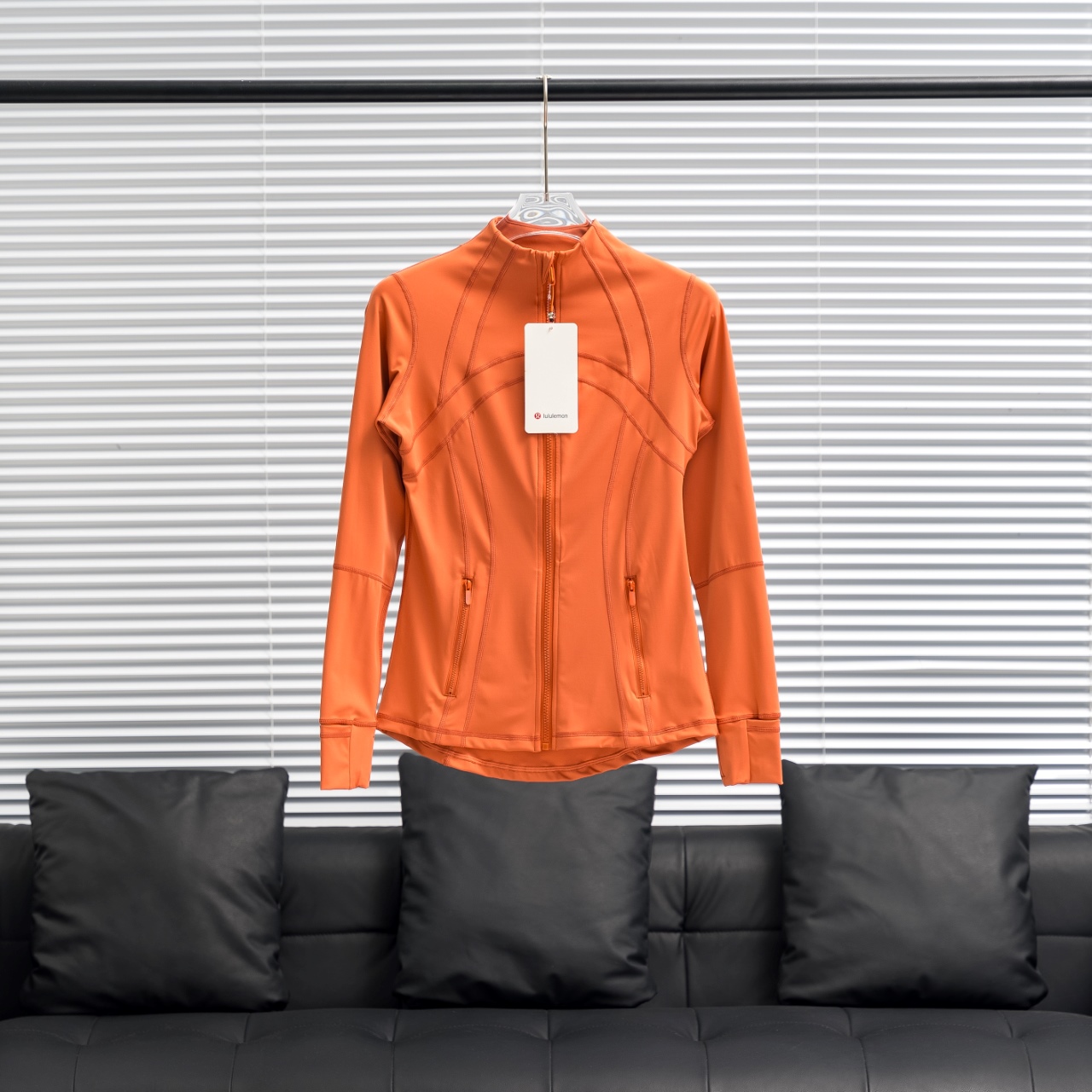 Lululemon Define Jacket in bright orange, sizes 2-12.