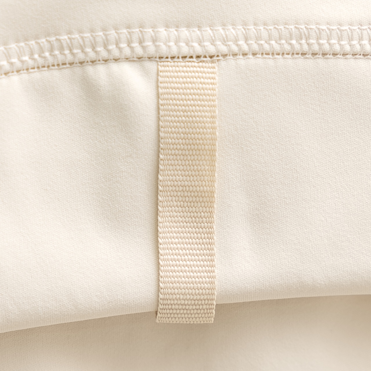 Lululemon Define solid color yoga top in white protein. Sizes: 2 4 6 8 10 12.