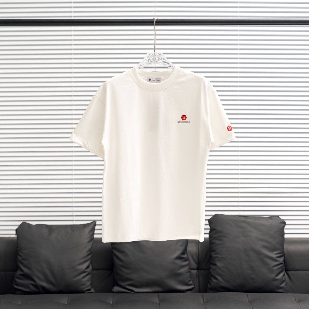 Lululemon embroidered logo short sleeve T-shirt. Colors: Black. Sizes: S-XXL.
