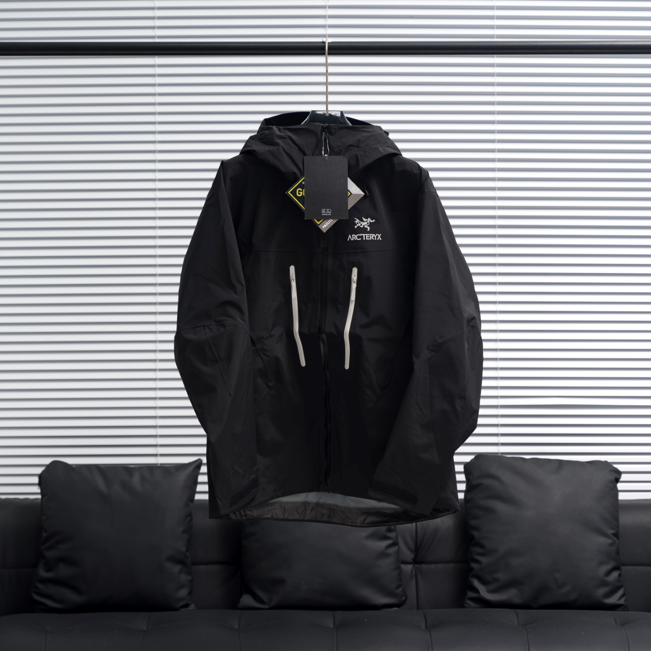 Factory direct ARC'TERYX Alpha SV6 hooded jacket in Orca color, sizes S-XXL.