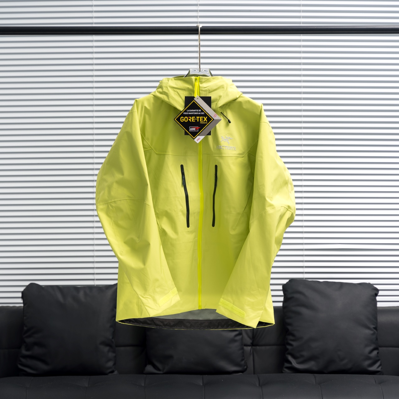 Factory direct supply ARC'TERYX Alpha SV6 hooded jacket in fluorescent green, sizes S-XXL.
