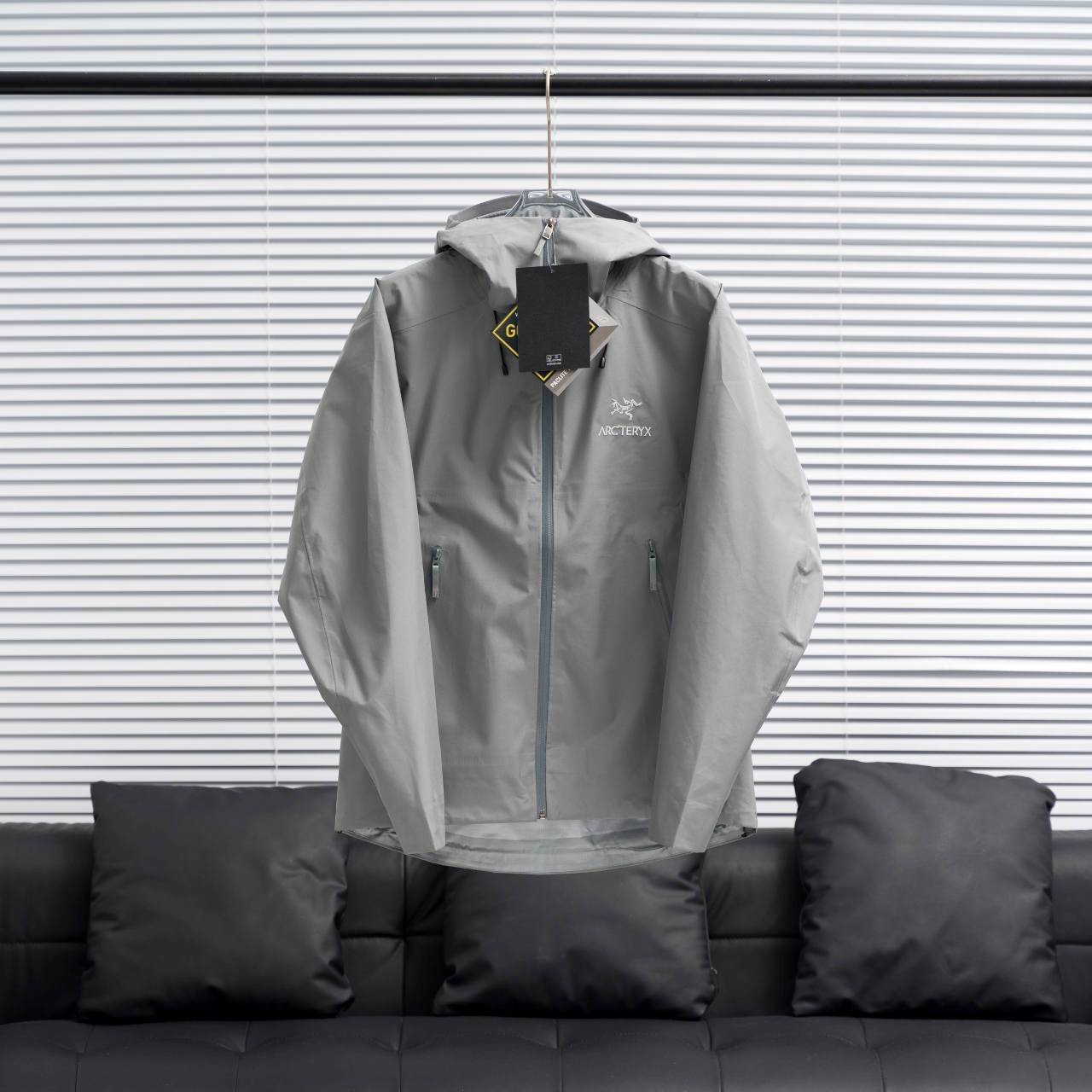 Factory direct Arc'teryx Beta LT hooded jacket in pixel gray, sizes S-XXL.