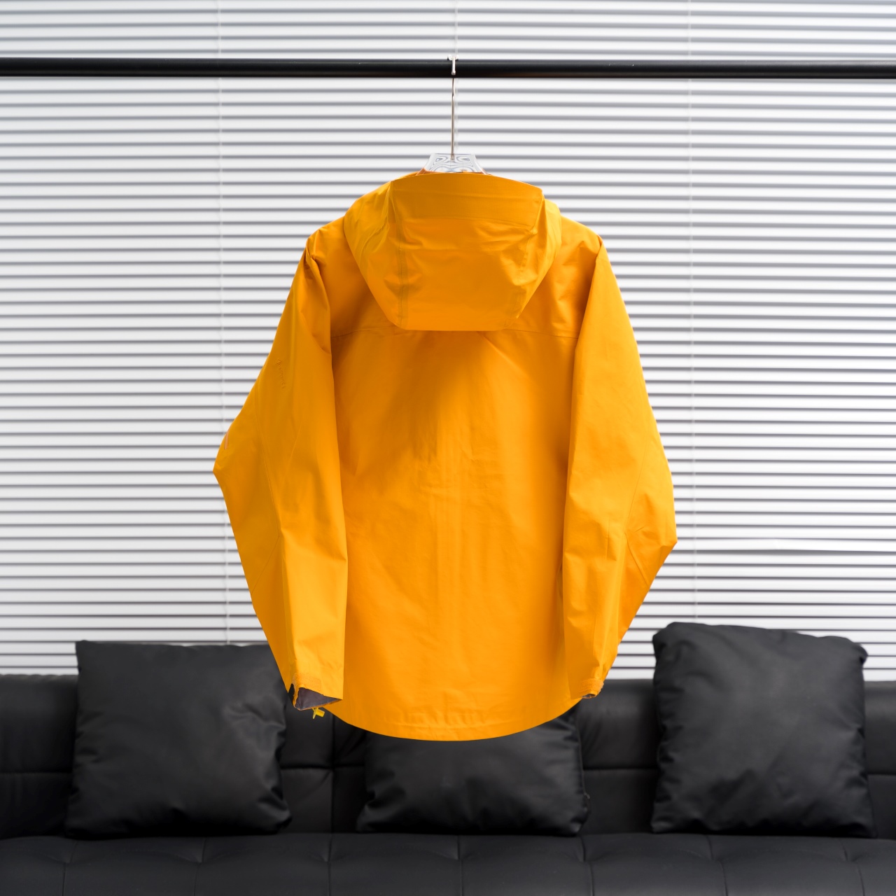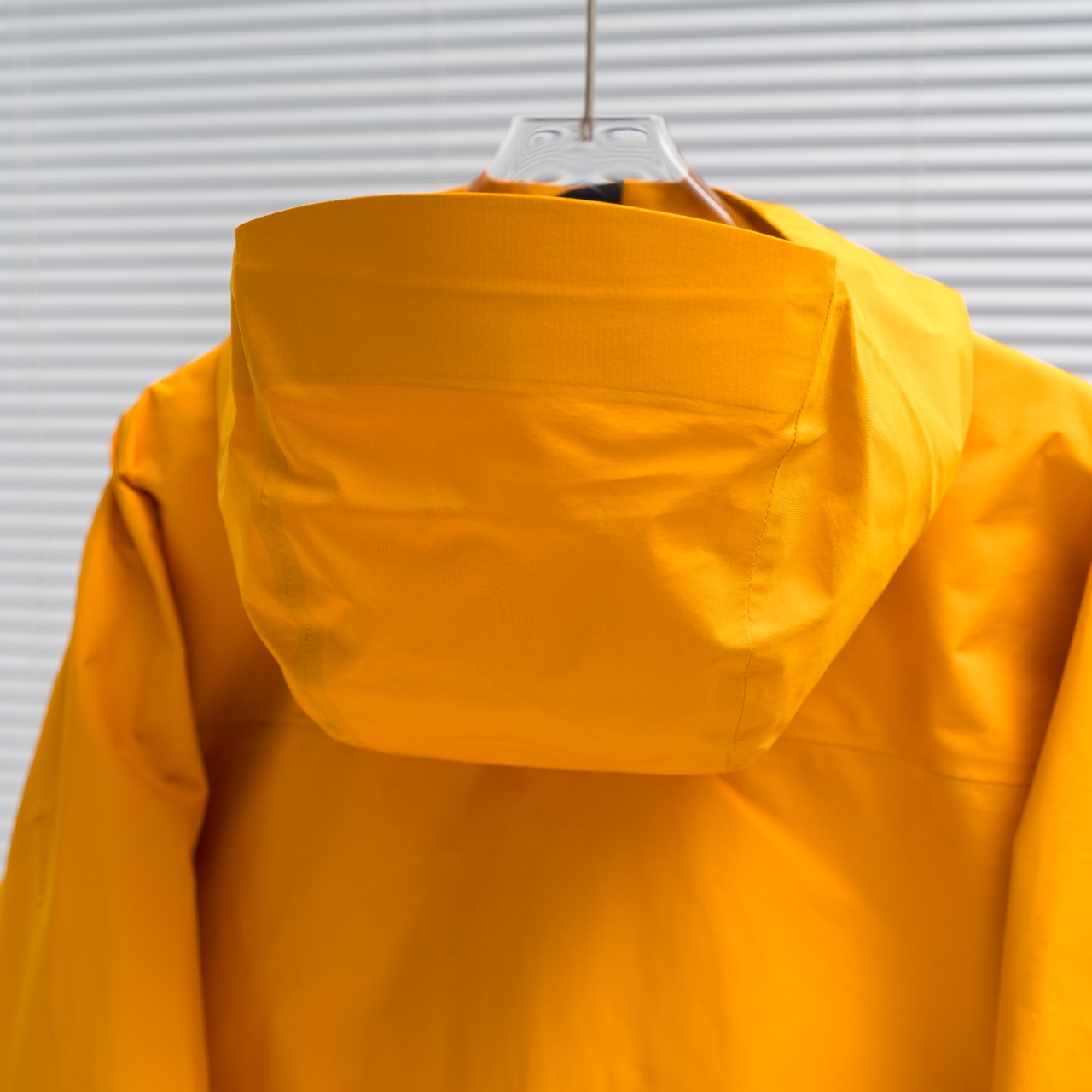 Factory direct ARC'TERYX BETA LT hooded jacket in Flame Yellow, sizes S-XXL.