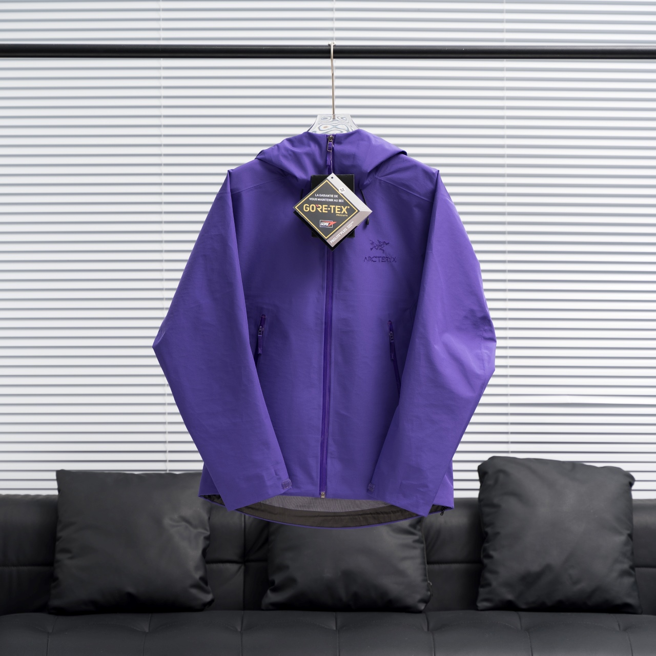 Factory direct Arc'teryx BETA LT hooded jacket in silver purple, sizes S-XXL.