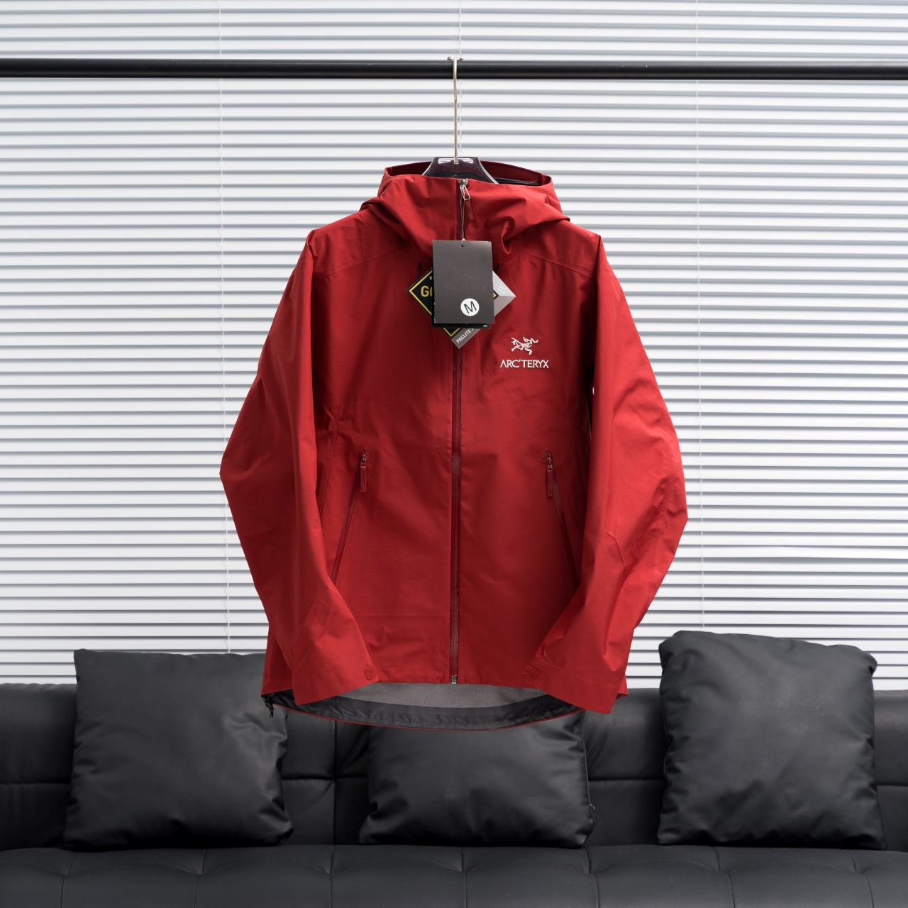Factory direct Arc'teryx BETA LT hooded jacket in Bordeaux red, sizes S-XXL.