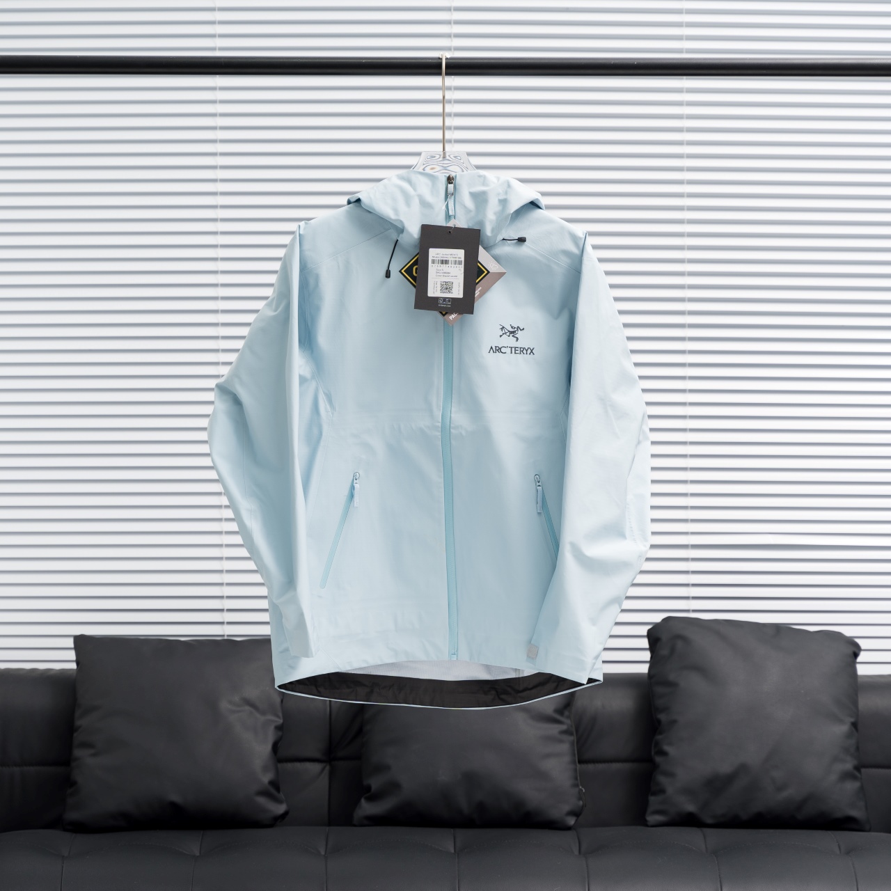 Factory direct Arc'teryx Beta LT hooded jacket in Cloud Water Blue, sizes S-XXL.