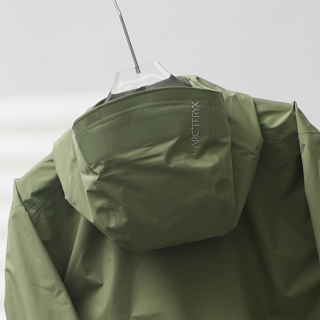 Factory direct Arc'teryx Bate SL lightweight breathable hooded windbreaker. Color: Sage Green. Sizes: S-XXL.
